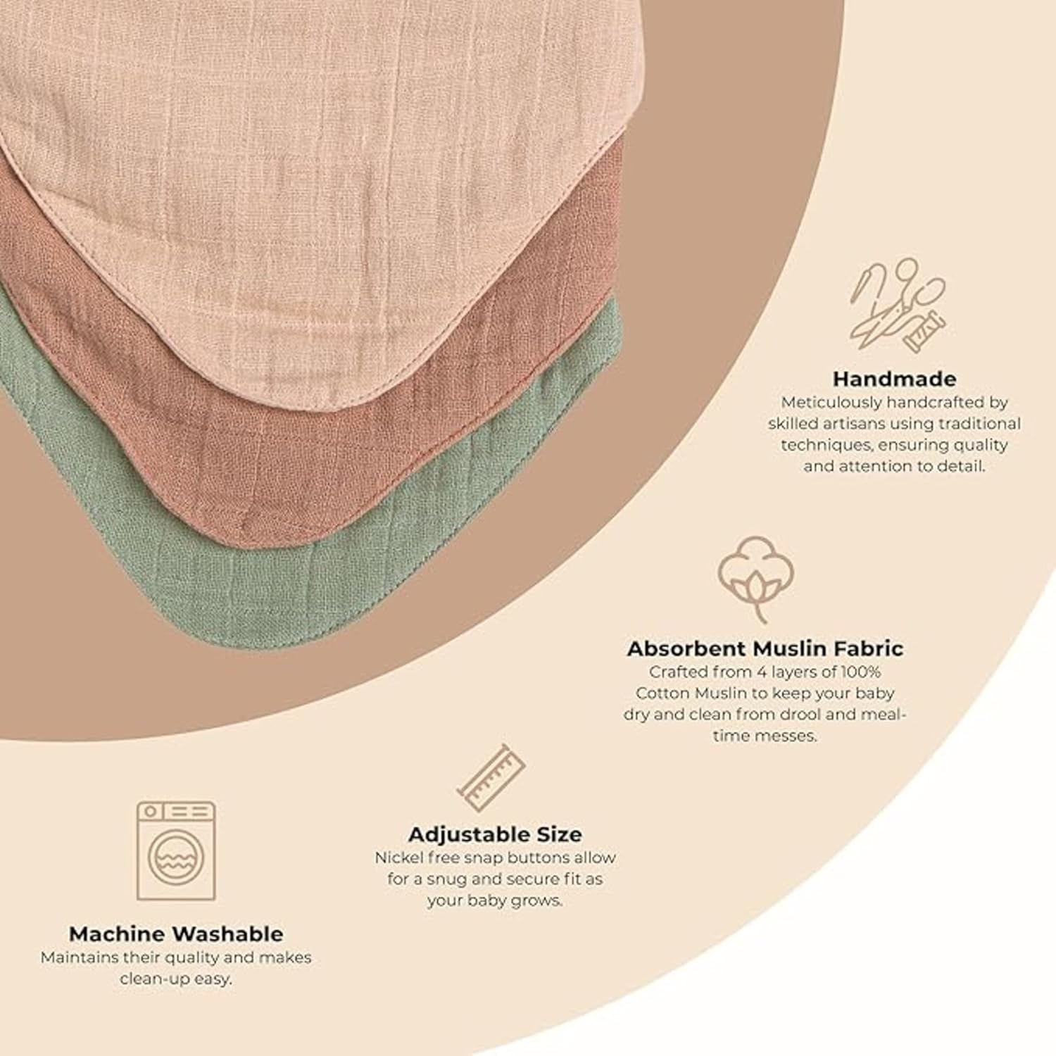 • Versatile Use - Made with soft, lightweight 4-layer muslin, great for teething babies, meal time, and stylish comfort
