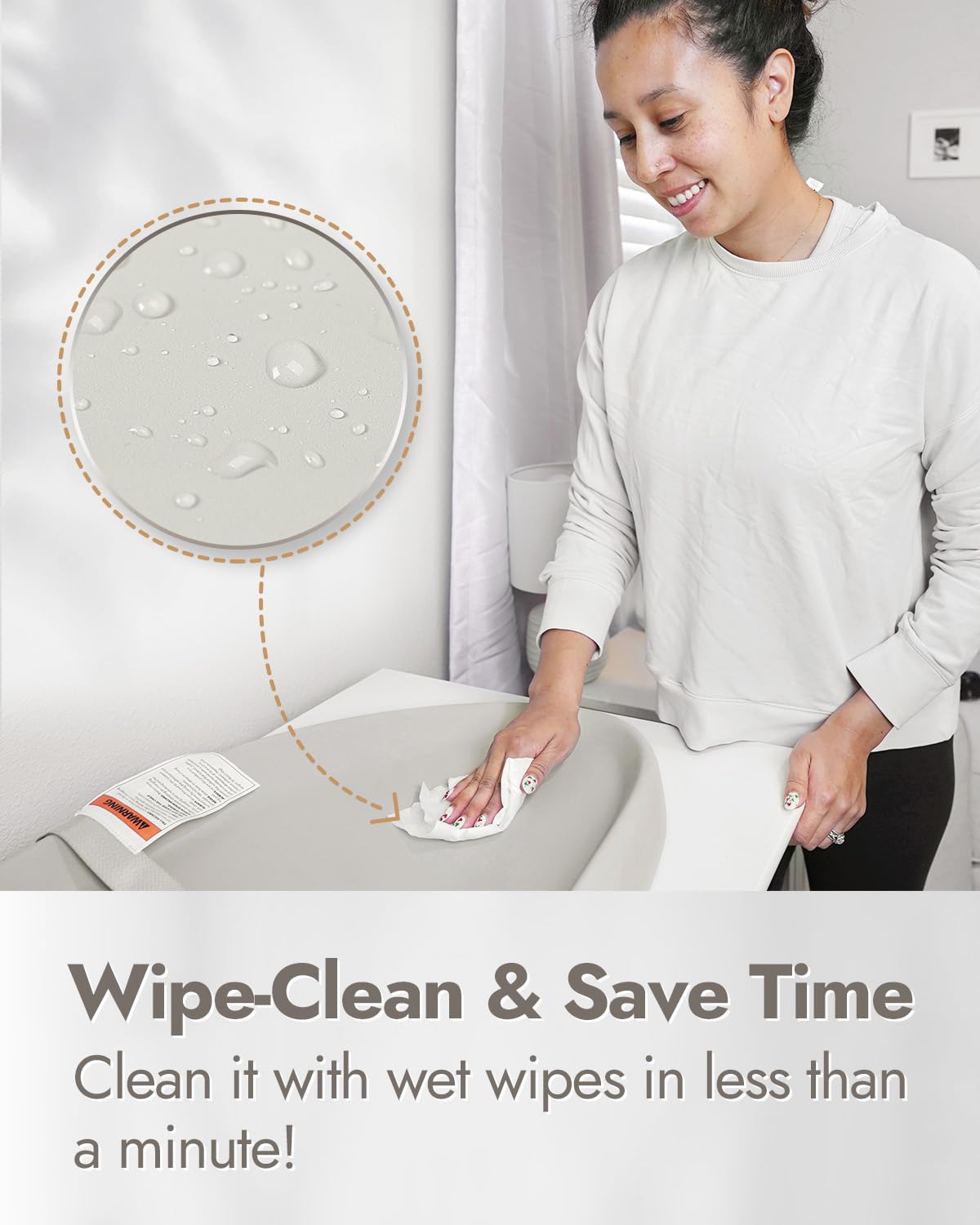 • Wipe-Clean & Save Time: Papablic changing pad is a waterproof and non-absorbent, parent-friendly changing pad. Eliminating liquids or odors allows you to be a true quick-change artist. You can clean it with wet wipes in less than a minute, while traditional diaper changing takes multiple minutes. Helping parents save 90% of the time makes changing diapers no longer a challenge.