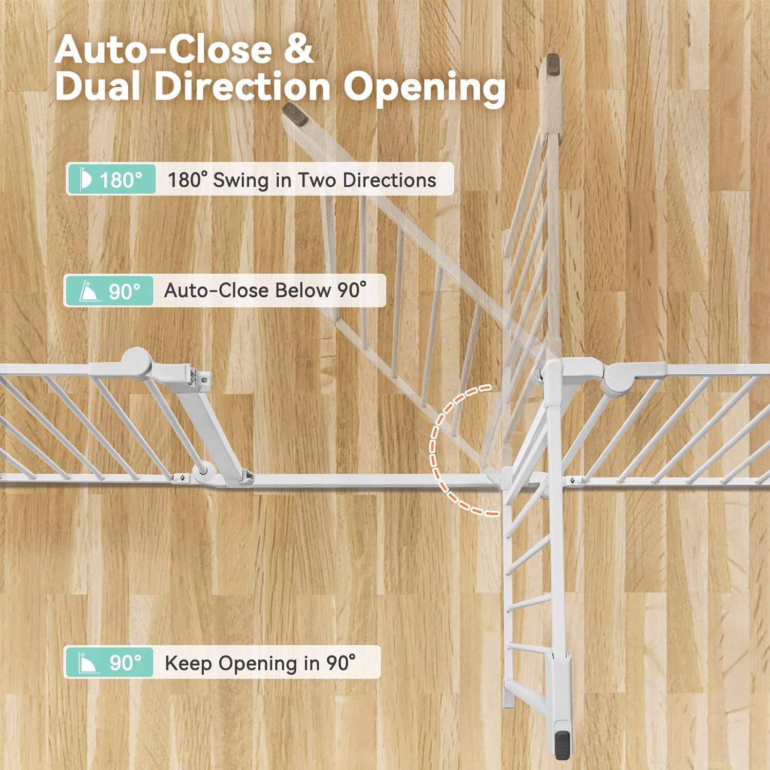 • Auto Close Gate & Easy to Use - Double-lock system, safety design. The super long pet gate will be closed automatically due to gravity. The door can be swung in both directions, easy to operate the puppy gate with one hand. No worries about forgetting to lock the pet gate.