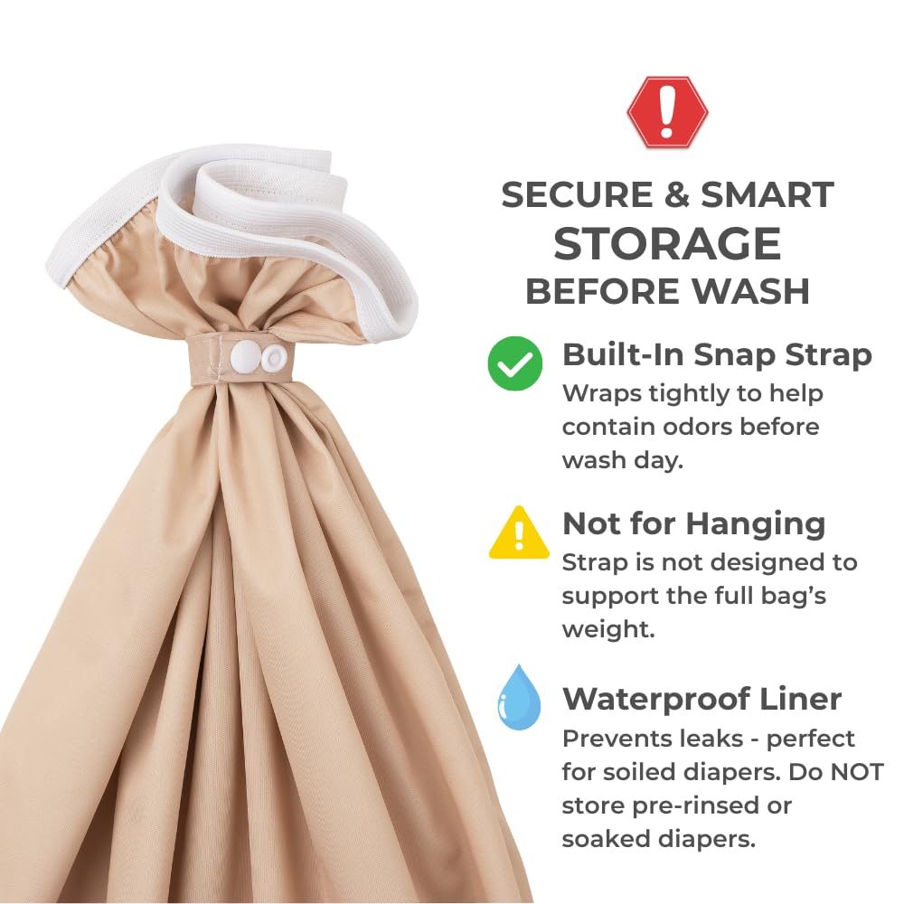 - LOCK IT IN: Keep your home smelling fresh with the tight strap enclosure that keeps odors inside the bag until wash day. Our Cloth Diaper Pail Liner has a secure fit with a tight strap enclosure that locks in odors and keeps them from escaping. The liner is made of high-quality waterproof PUL material that prevents leaks and smells from escaping, so you can have a clean and odor-free home.
