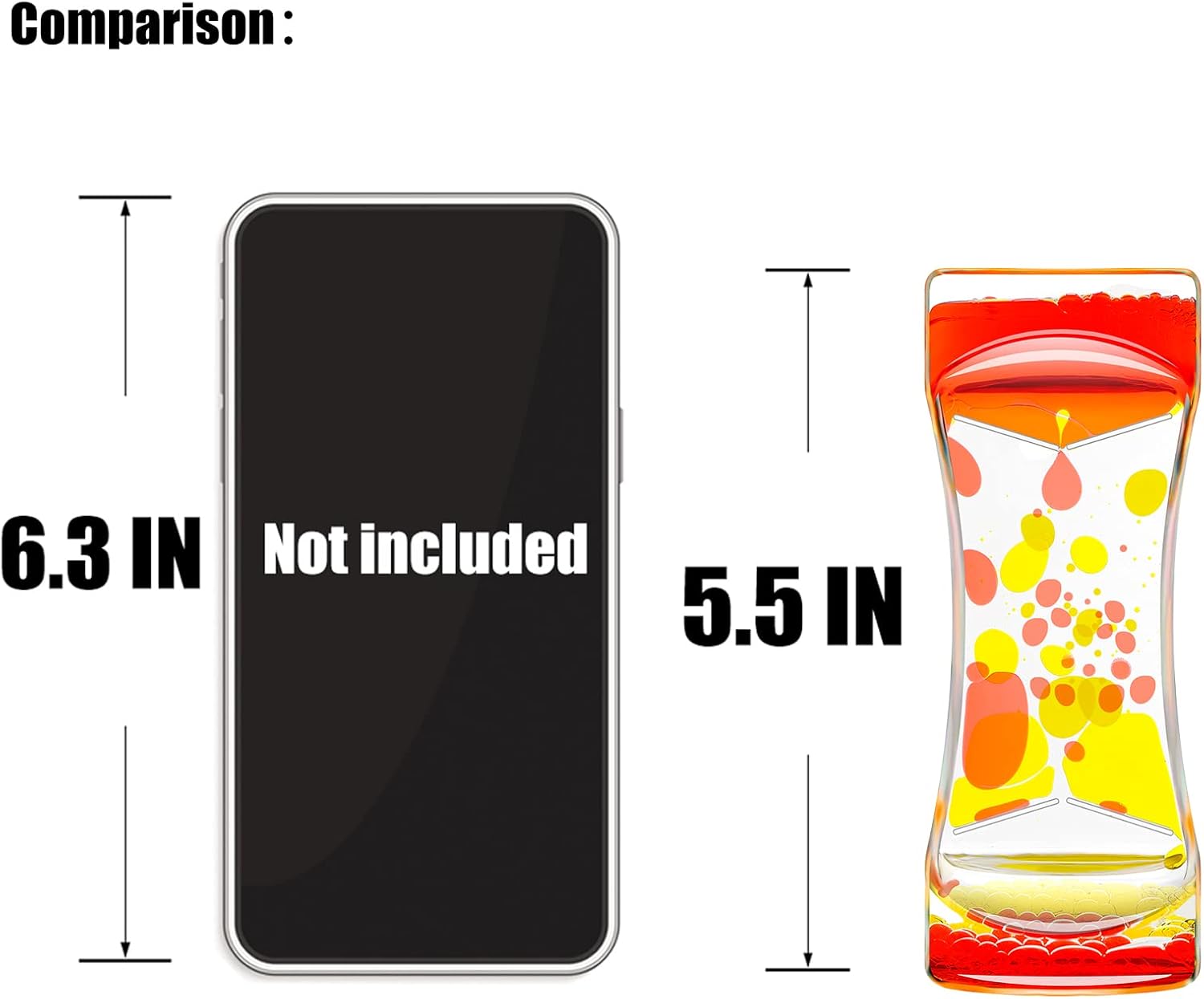• 4.Great Gift Ideas for Every One: We are giving the best holiday gift this season that you can’t resist. This liquid timer is the perfect fidget autism toy, desk corner toy, and even play as a classroom reward.- DRIP OIL MOTION BUBBLE TIMER! Size:13.7 x 5.5 x 3cm/ 5.39 x 2.16 x 1.18 inch (LxWxH)