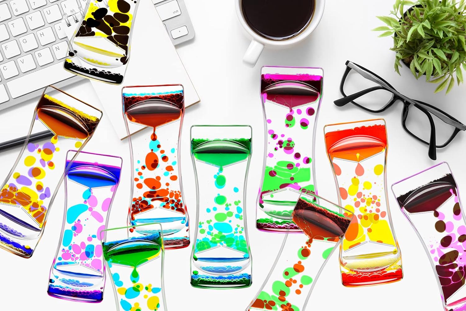 • 2.Liquid Bubbler Timer Toys: Great desk sensory play top toy for all ages ranging from children to adults. A great Home Ornament and office relax decor. The soothing rainbow colors remind you to slow down, relax and enjoy every moment. The liquid motion bubbler will help your calm down or focus on something.