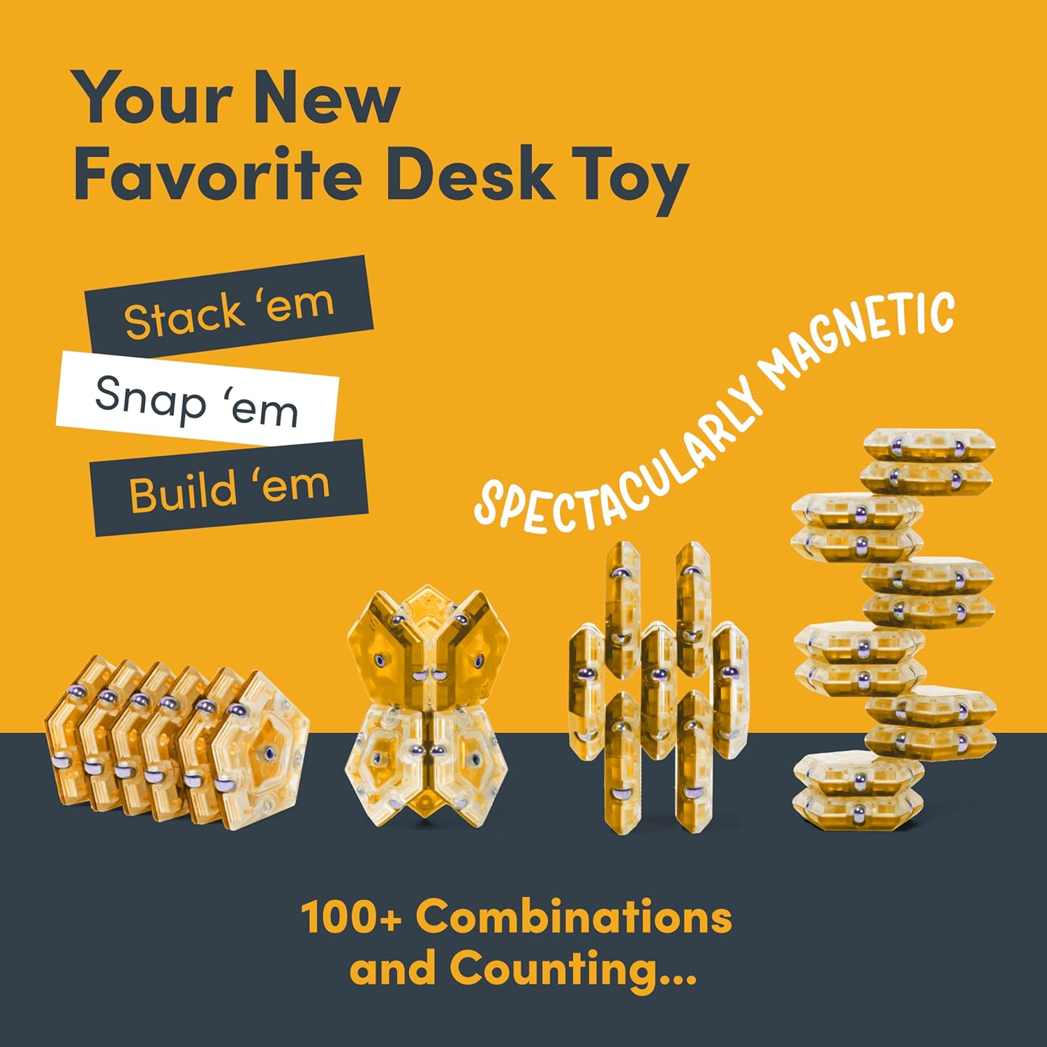 • STACKABLE, SHAKEABLE, SNAPPABLE, BUILDABLE: Use magnetic magic to build gravity defying structures then use your hand as a hammer to mess up your masterpiece. Have a jumble of pieces? Pile them into your palms and shake vigorously. They’ll magically self-align every time!