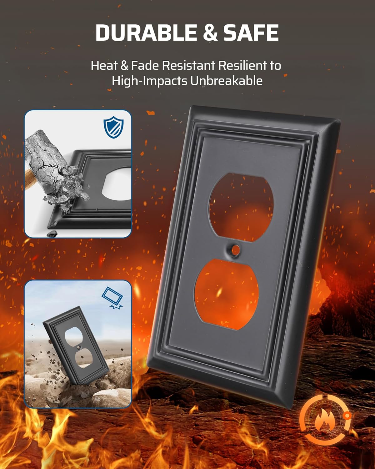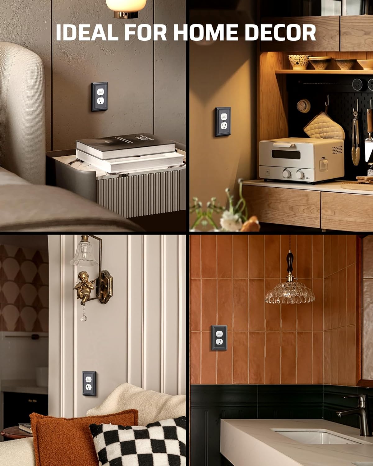 • [Modern Style] The black color complements the textured edges, adding a charming antique touch to your home; this electrical outlet covers wall plate are available in different formats, ideal for dimmer switch, toggle switch, outlet receptacls, GFCI outlet