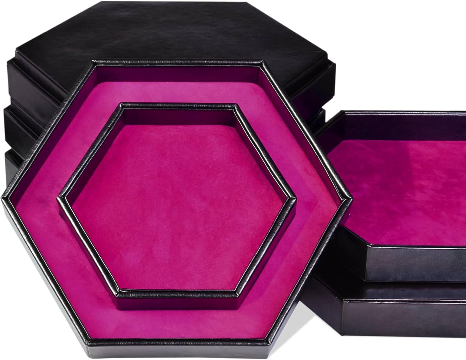 DND Dice Tray - 2 in 1 Rolling and Storage Hexagonal Tray, Faux Leather, Rose Red