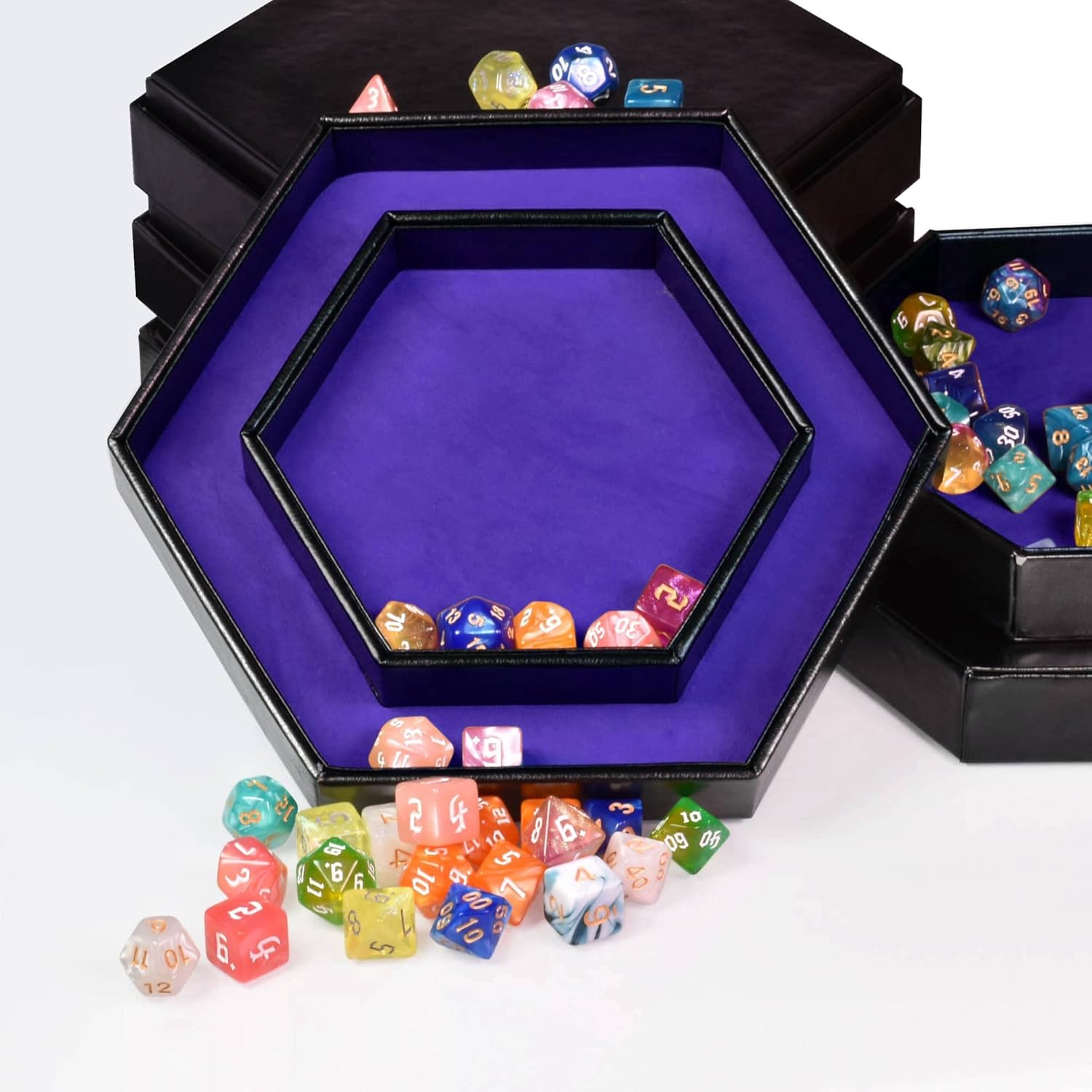 DND Dice Tray - 2 in 1 Rolling and Storage Hexagonal Tray, Faux Leather, Purple