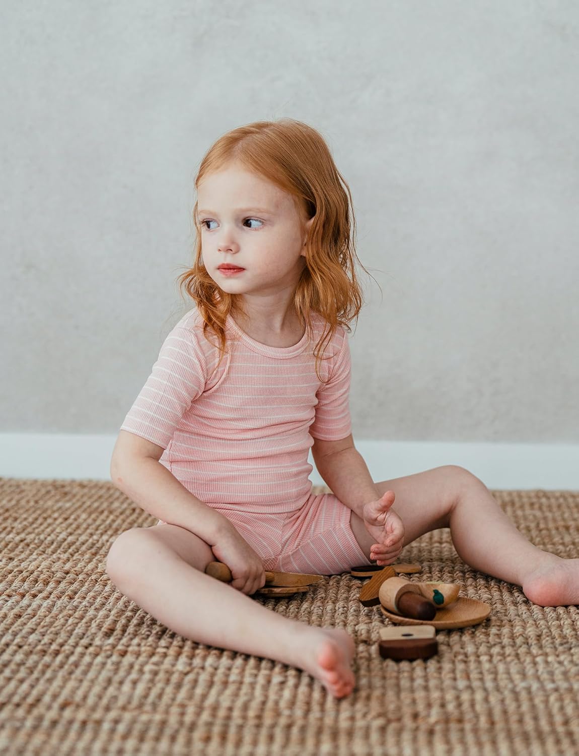 • COMFORTABLE FABRIC - This stylish Stripe Pattern pj set is a perfect blend of multi-functional style and comfort. Viscose is like a smooth material similar to silk breathable, similar to cotton in this regard. Enough to help protect child's delicate skin. That's why pajama set is Easy to dye, light weight, and natural material. It will give perfect fit.