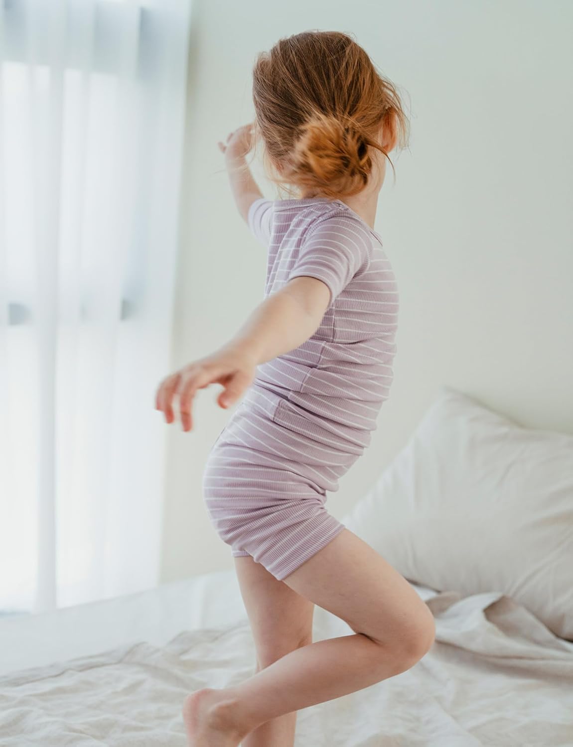 • COMFORTABLE FABRIC - This stylish Stripe Pattern pj set is a perfect blend of multi-functional style and comfort. Viscose is like a smooth material similar to silk breathable, similar to cotton in this regard. Enough to help protect child's delicate skin. That's why pajama set is Easy to dye, light weight, and natural material. It will give perfect fit.