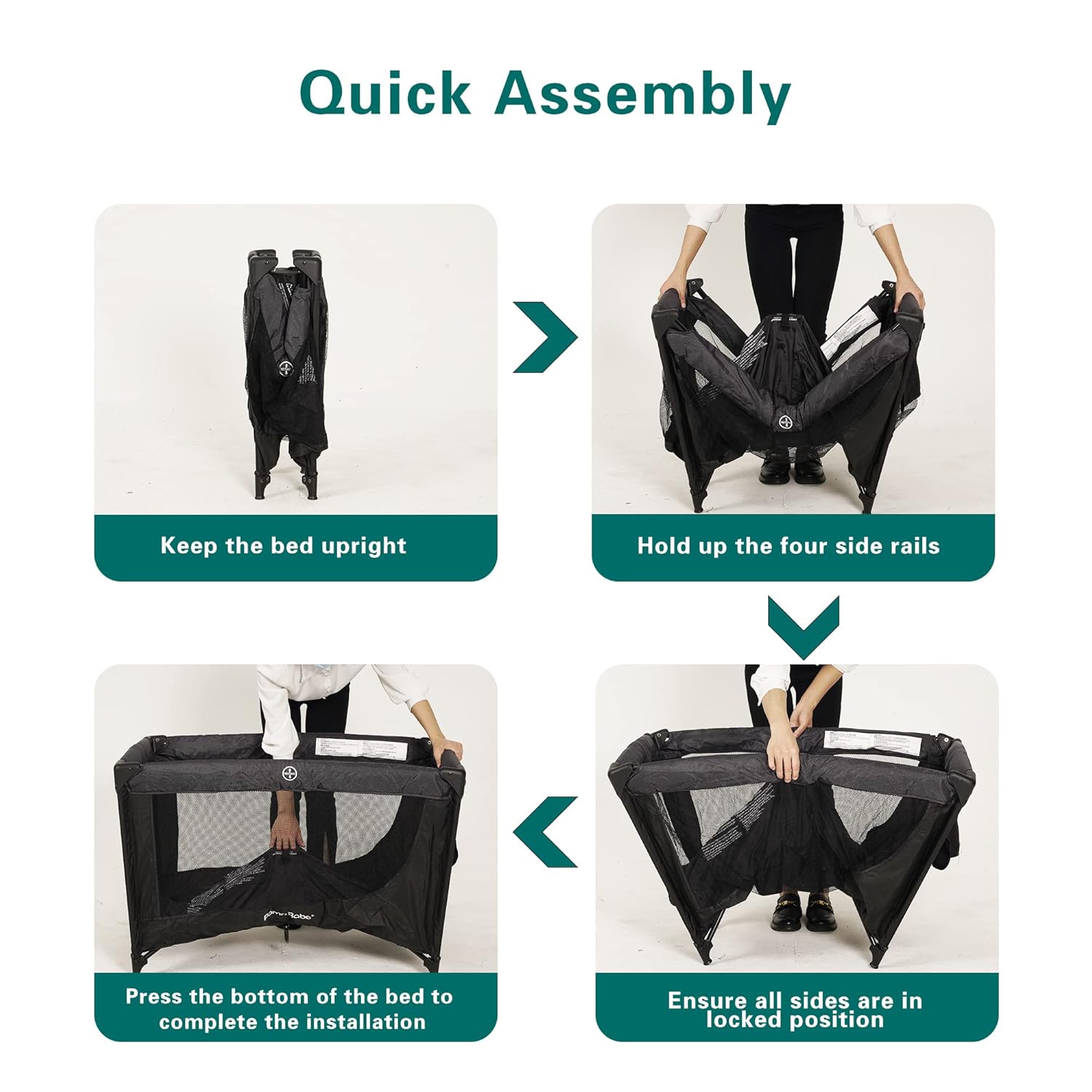 Pamo Babe Portable Crib Baby Playpen with Mattress and Carry Bag (Black)