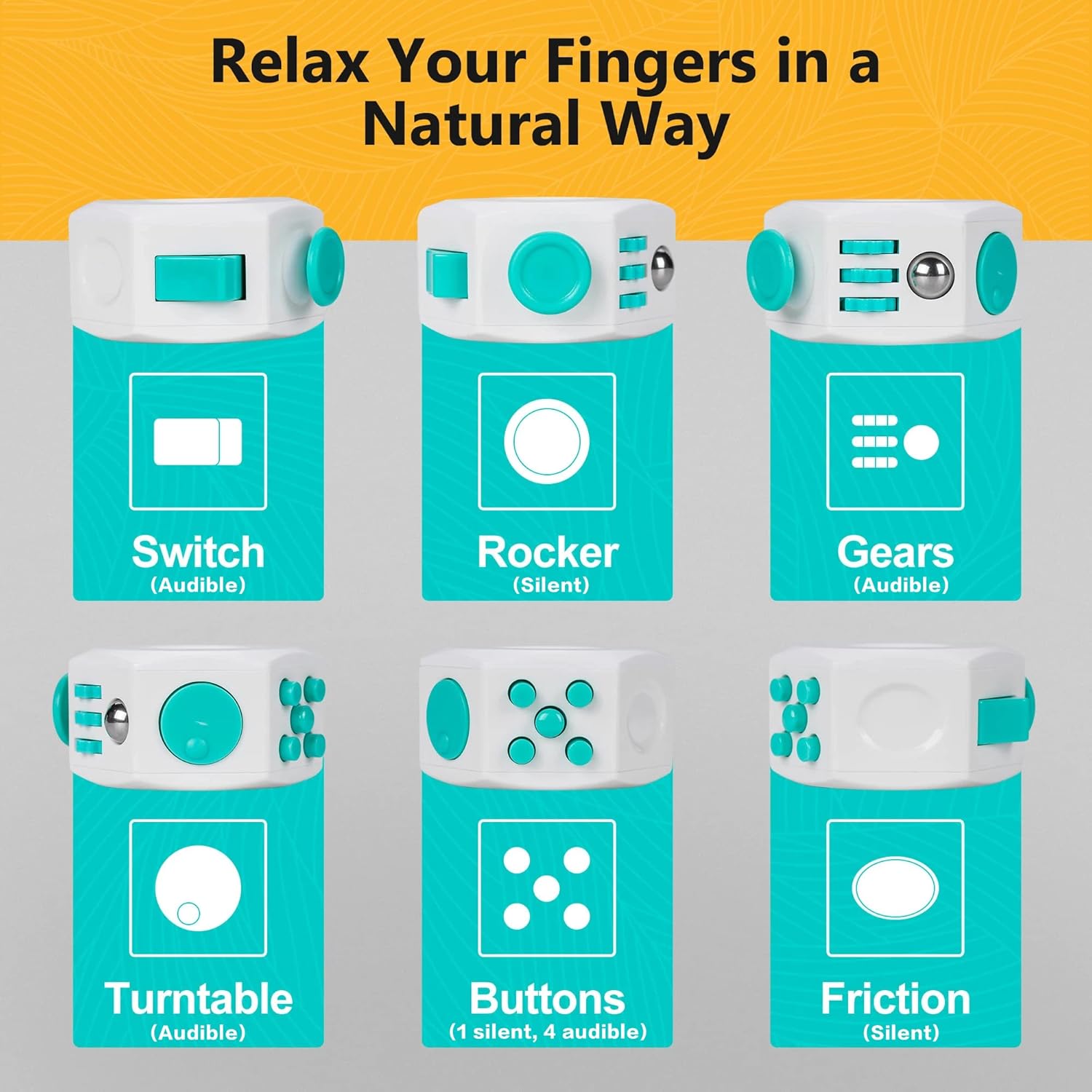 • Soothing and Relaxing: The cube fidget toy has switch, rocker, gears, turntable, buttons, friction buttons, supporting stress and anxiety relief, dexterity and hand-eye coordination.
