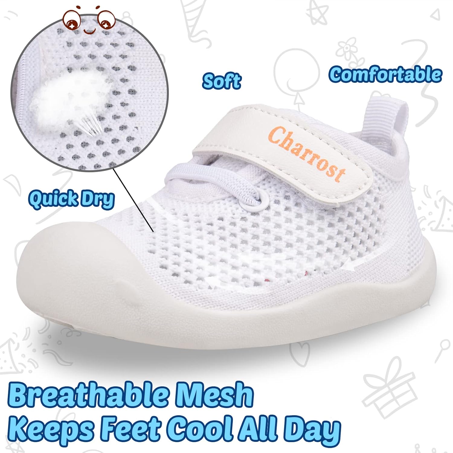 • Breathable: The soft, upgraded knit upper of these toddler sneakers ensures superior breathability, quickly wicking away sweat to keep little feet dry and comfortable—perfect for summer walks, runs, or active play.