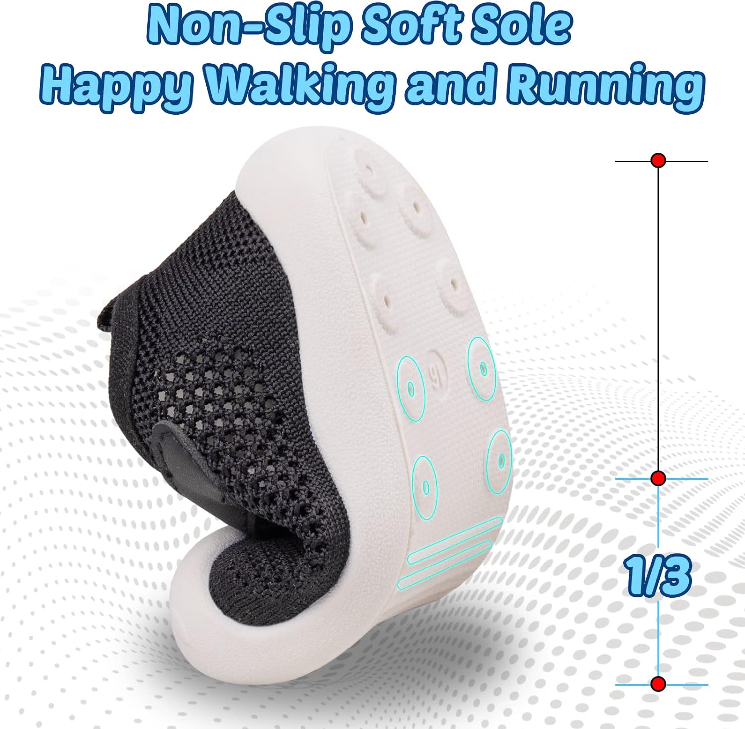 • Breathable&Comfortable: Toddler shoes are made of breathable soft mesh material, which quickly absorbs sweat, allows kid’s little feet to stay cool and dry all day, and is gentle on children skin, making baby's feet feel soft and comfortable even without socks.The mesh surface of toddler running shoes is easy to wash and dry, and if it gets dirty, throw it in the washing machine no problem