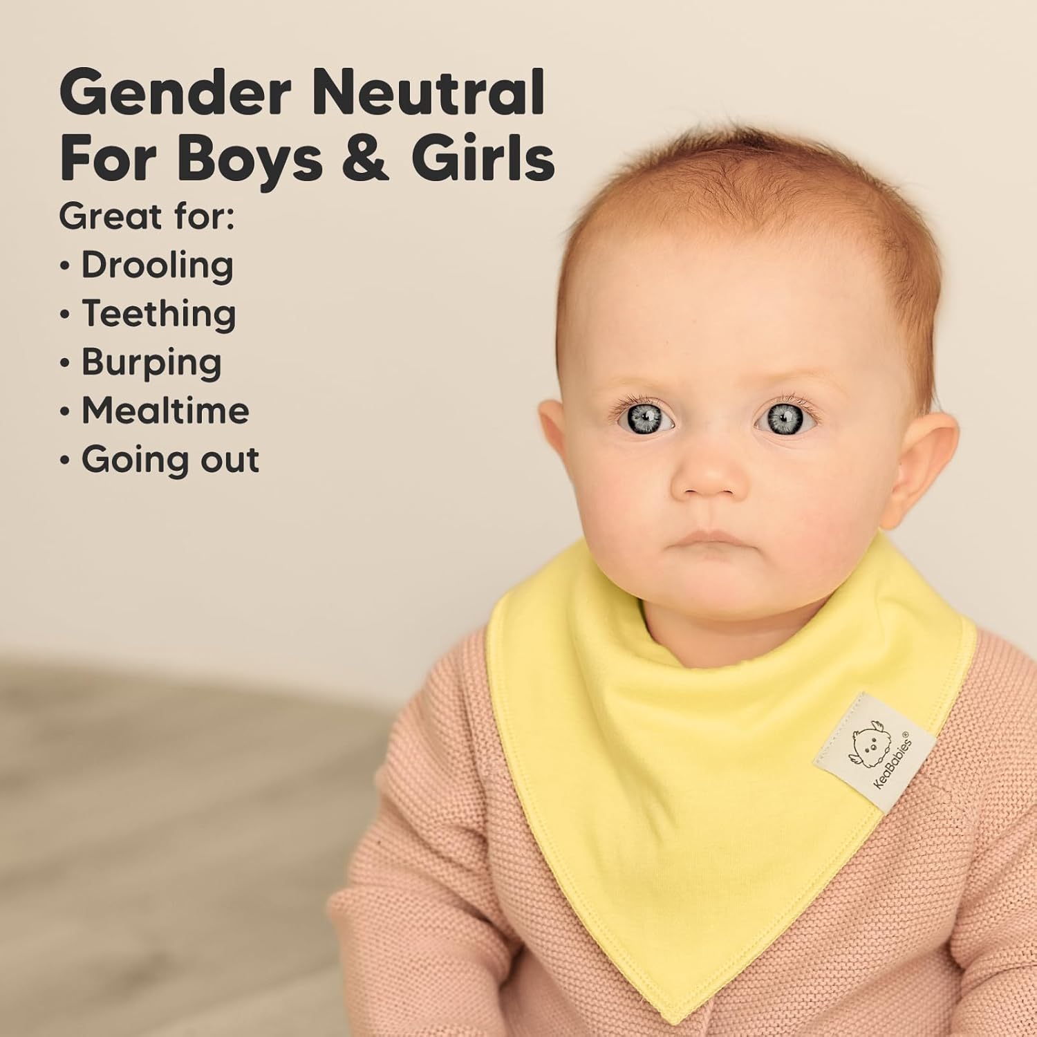 • 8-Pack Baby Bandana Bibs - KeaBabies Organic Drool Bibs come in gender-neutral shades to easily match your baby’s daily outfit. The soft and breathable fabric of these absorbent baby bibs ensure your little one stays cool while drooling and teething.