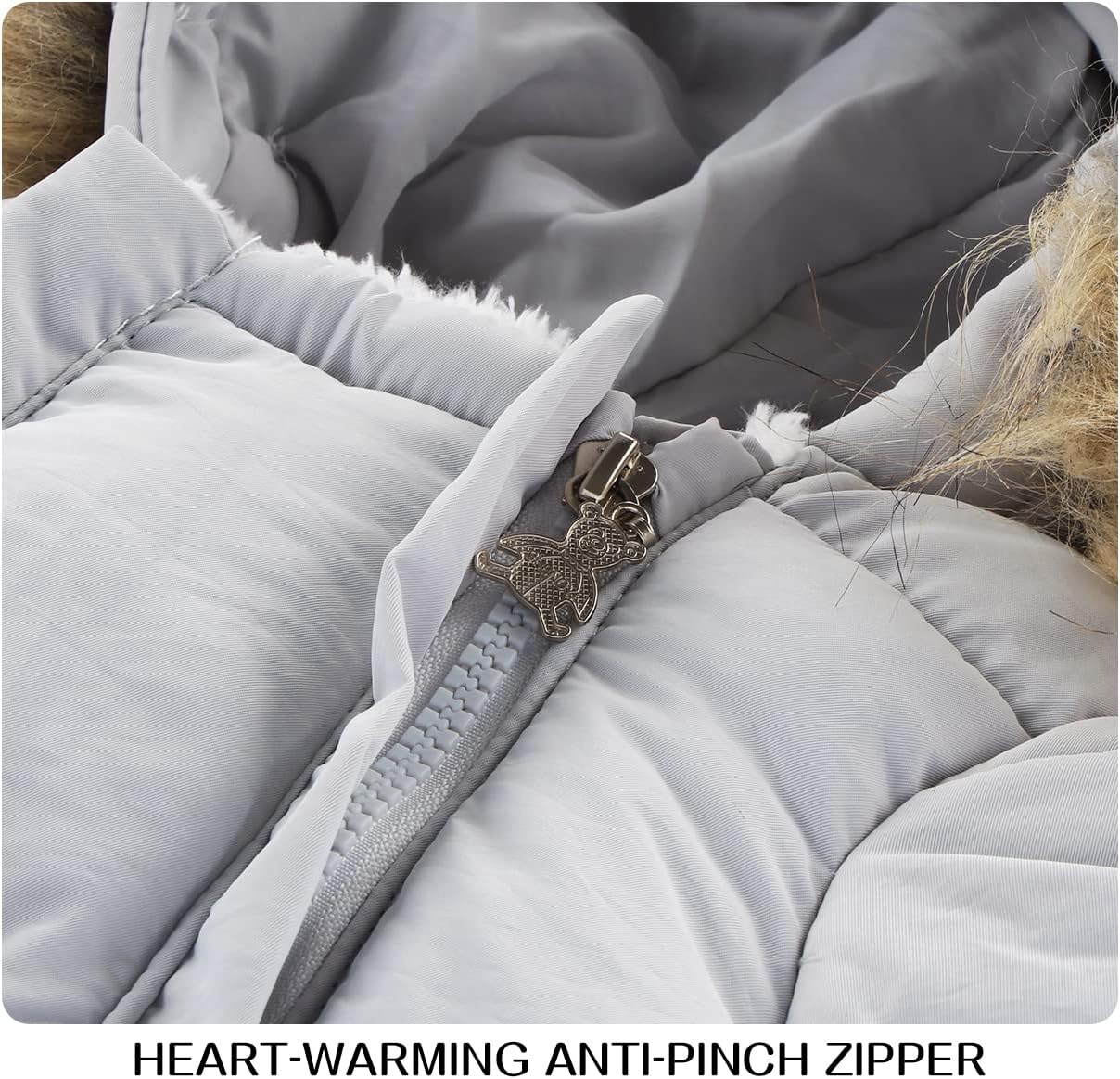 • High quality Materials: The baby winter snow suit is made of high-quality polyester fiber. The infant snowsuit have double zipper closure in the front, it can be worn in a short time to prevent the baby from catching cold during the changing process