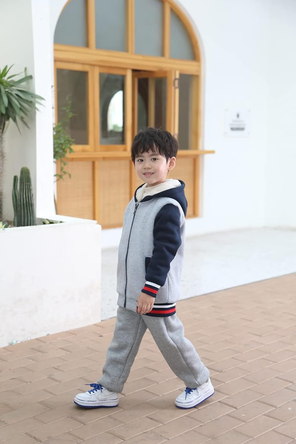 • Boy's sherpa fleece lined jacket hoodie is featuring a 45% Cotton and 55% Polyester blend with soft fuzzy fur of 100% polyester Lining fabric, long-sleeves, smooth quilted wadded fabric, zipper closure, and very thick design to keep the boys warm and dry.Best for toddler/kid boy girl fall spring winter clothes.
