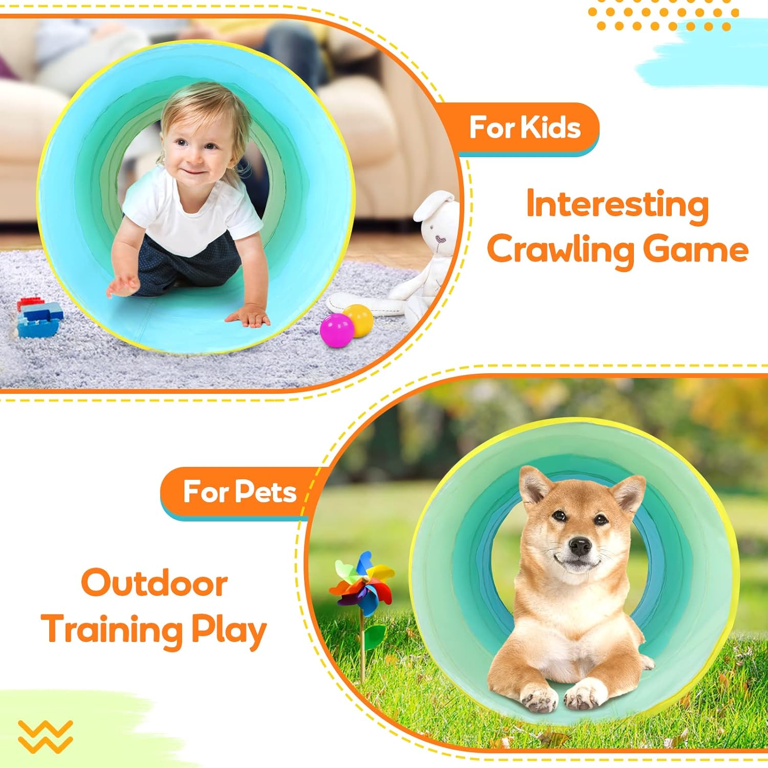 - 【Multifunction Play Tunnel】Not only can parents put safe obstacles in the kids play tent, such as pillows and plush toys, allowing children to experience the"obstacle hole drilling" game, but also play the "Peekaboo" game with their friends. Tunnel crawl is also suitable for Pets, Cats, Dogs, and so on.