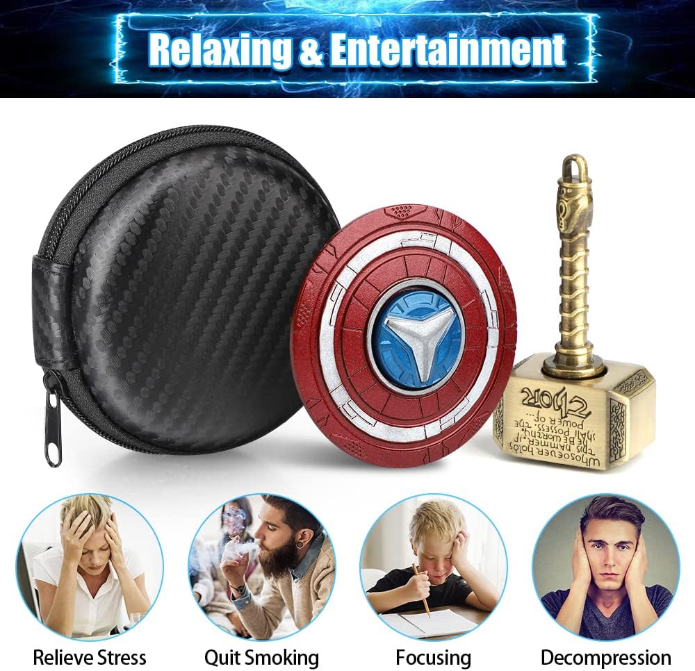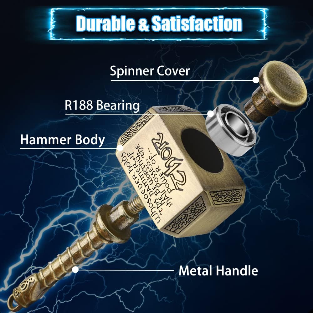 • Colorful Spectacle : Watch as this metal spinner creates a captivating rainbow effect with every spin. The vibrant shield and hammer design are sure to catch everyone's eye. Prepare to be amazed!