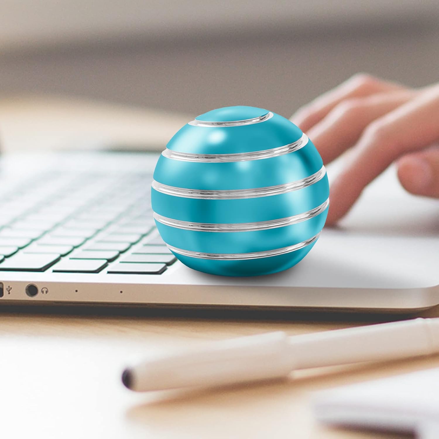 • PACKAGE CONTAINS - 1pc light blue kinetic spinning desk toy, size: 1.77inch/45mm, weight: 3.88oz./110g, spinning time:180-300 seconds