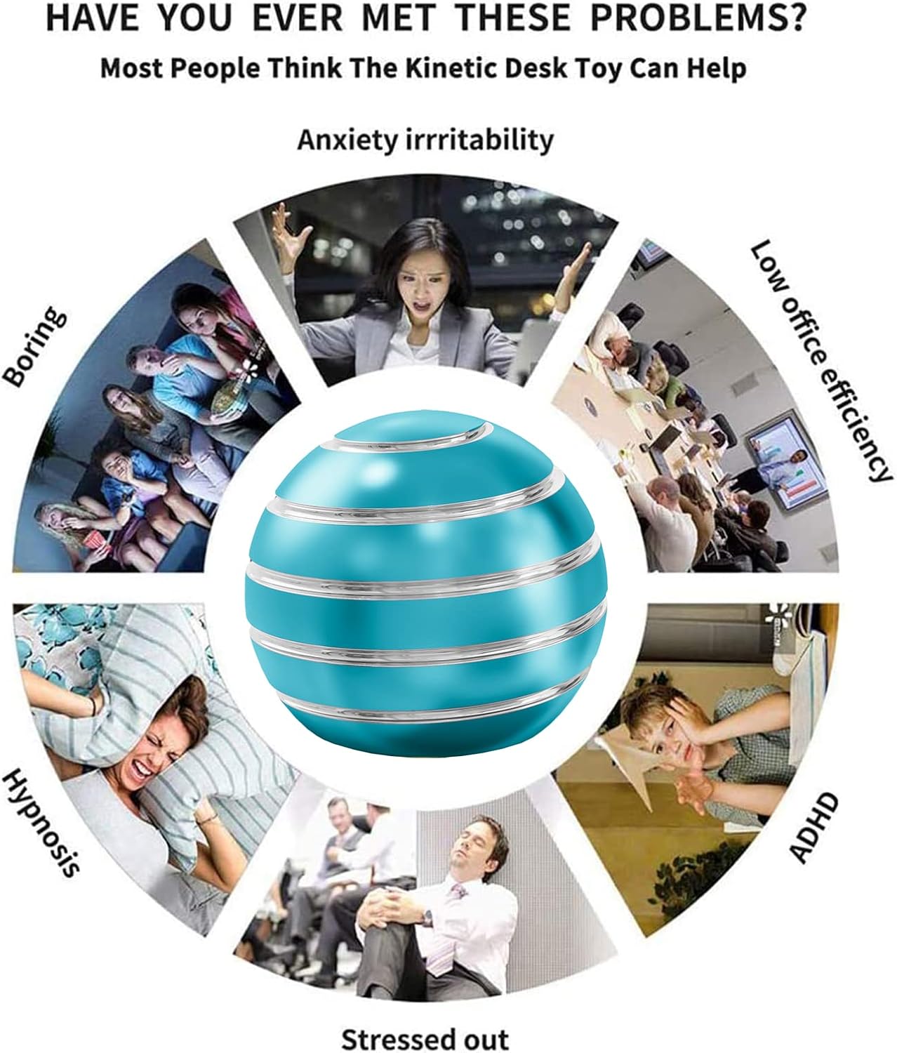 • ADHD ANXIETY STRESS RELIEF DESK TOYS - The cool office desk toys has been designed to help people of all ages relieve stress and anxiety. Our Kinetic fidget desk toys can help students focus, it is relaxing for people with ADHD, it helps seniors improve manual dexterity, and this fidget sensory toys can even help quitting smoking or biting the nails