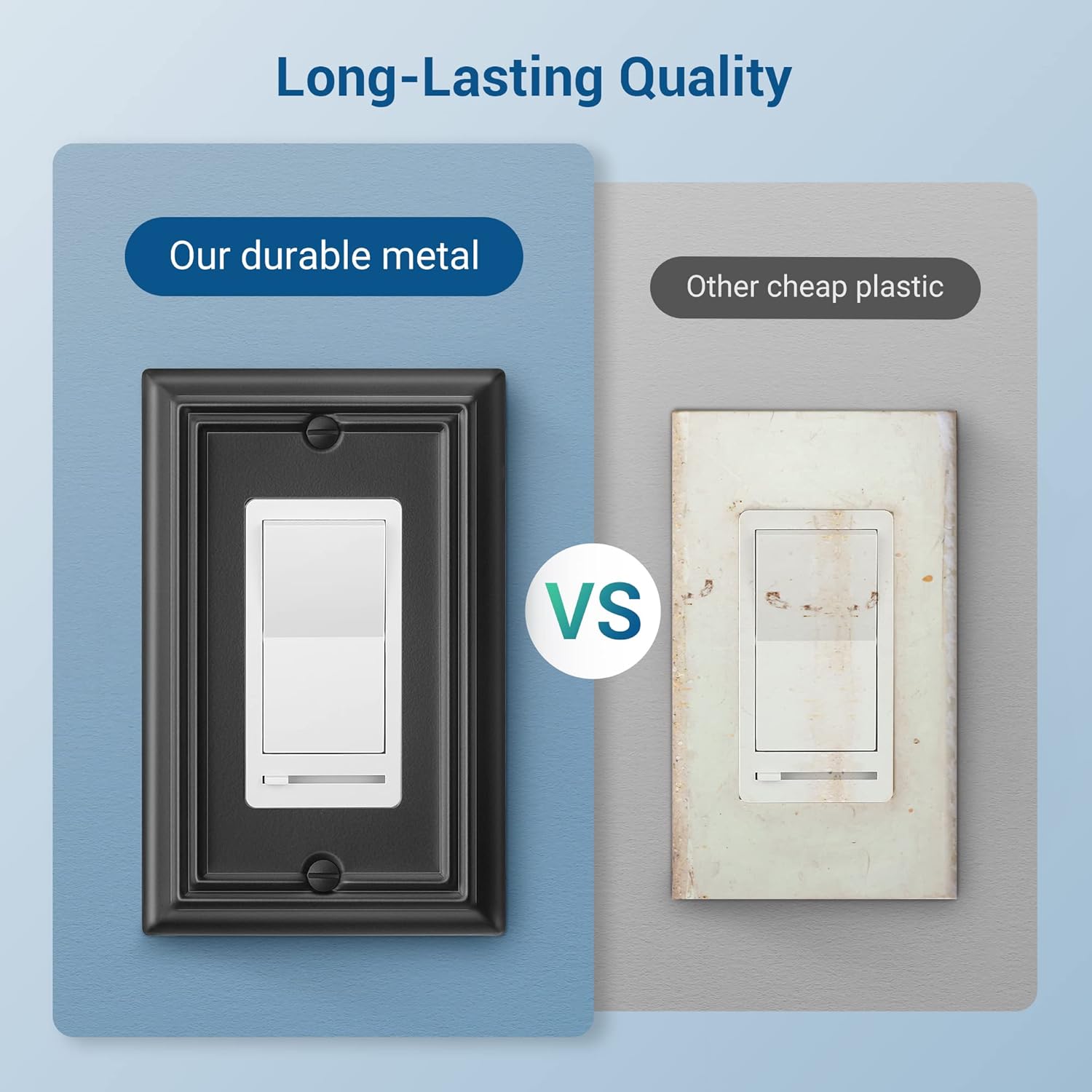 • 【Wide Application】The metal decorative wall plates match in various formats, can be widely used in dimmer, toggle switch, outlet receptacle, GFCI outlets etc.