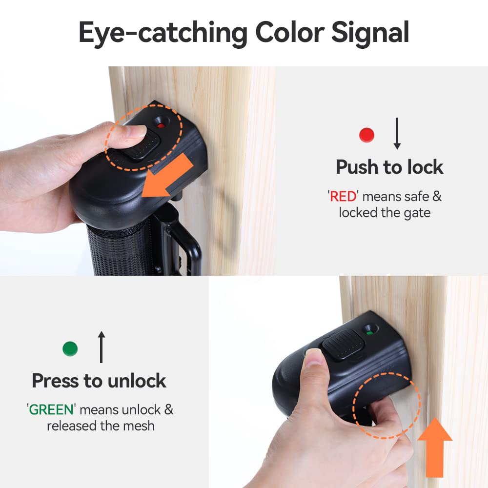• Noiseless retractable design - The technical upgrade reduces the friction of the gate while also reducing the sound of retracting the mesh. We are committed to creating a safe, closed, and quiet environment for your baby and pets.