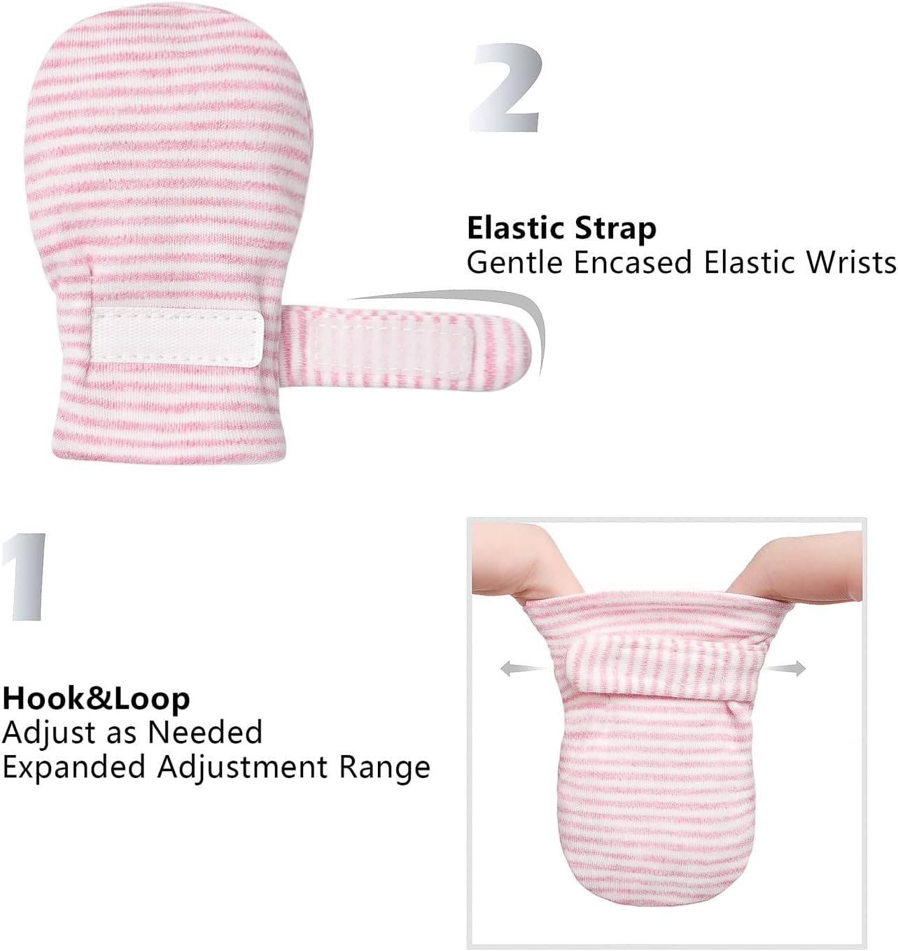 Newborn Baby No Scratch Mittens Stay On, 100% Cotton Breathable, Adjustable Infant Gloves for Baby Boys Girls Mittens