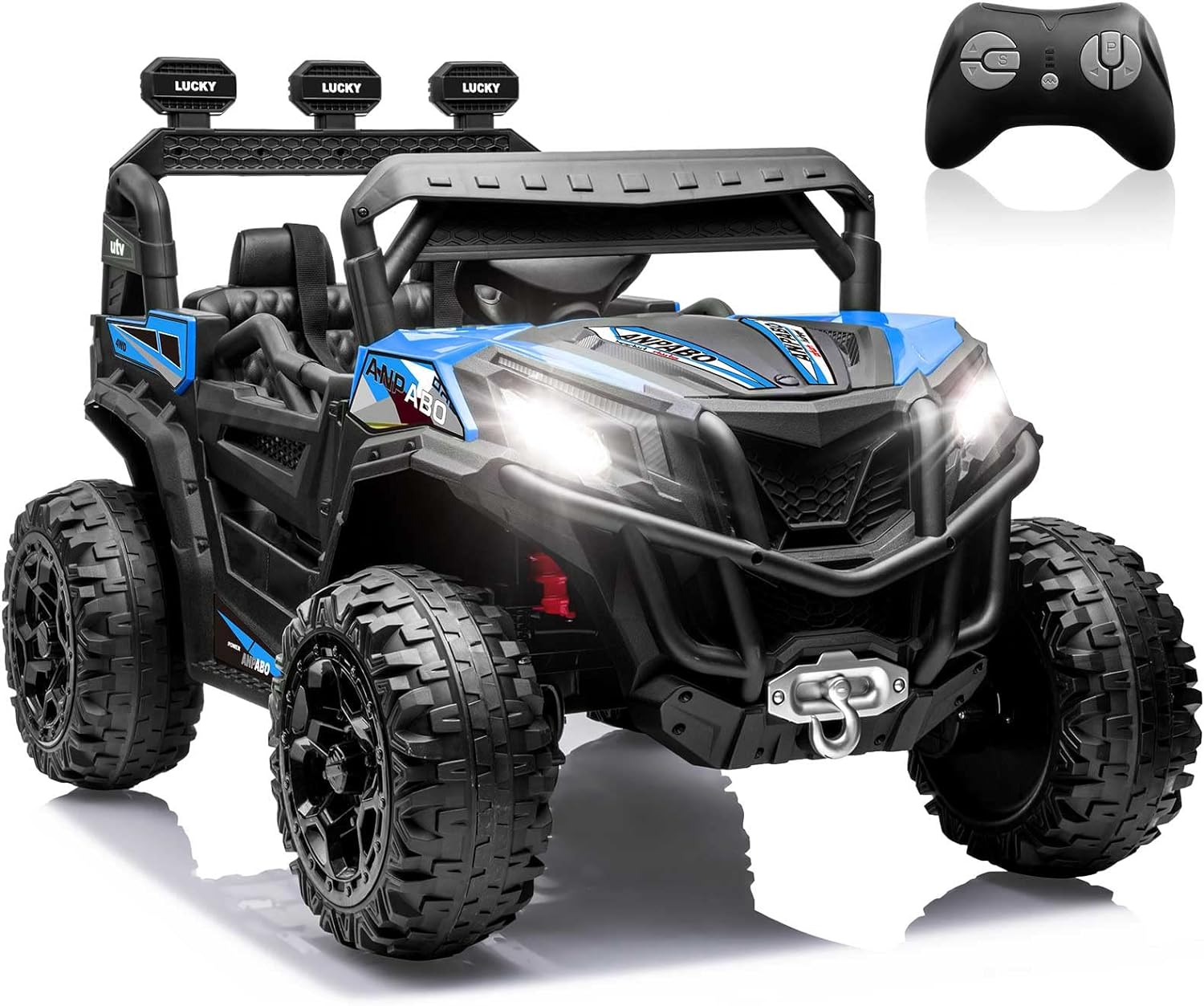 ANPABO 24V 4X4 Ride on Car Truck w/Remote Control, 4WD/2WD Switchable Kids UTV, 19" Spacious Seat, 4 Shock Absorbers, Soft Start, Music Player, Electric Car for Kids (Blue)
