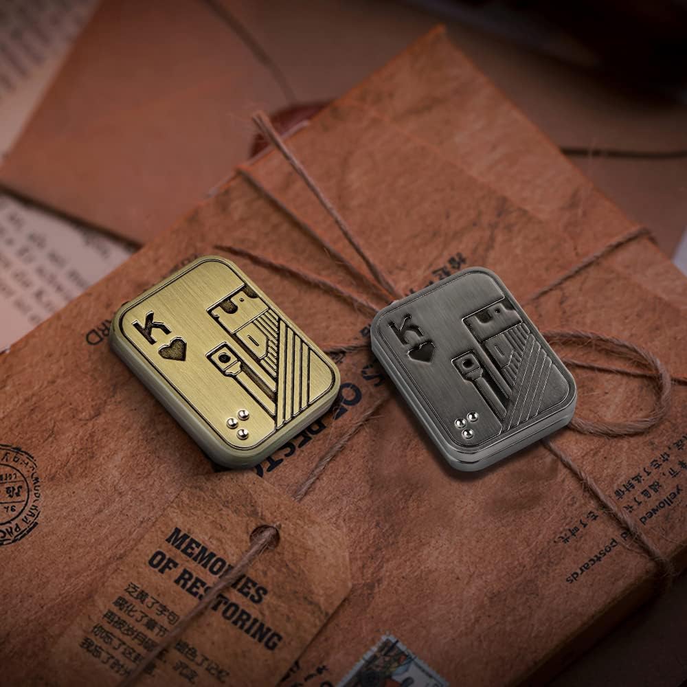 - 【Excellent Fidget Sliders】- The poker Fidgets Slider toys is entirely made of zinc alloy. The front and back of the slider are beautifully engraved with Skull and Poker King K, respectively. The color of the metal is processed by the electroplating process, so the color of the upper metal body is copper, and the color of the lower metal body is brass. Every detail of the slider has been precisely machined, and the surface treatment is delicate and smooth, making it more comfortable to hold.