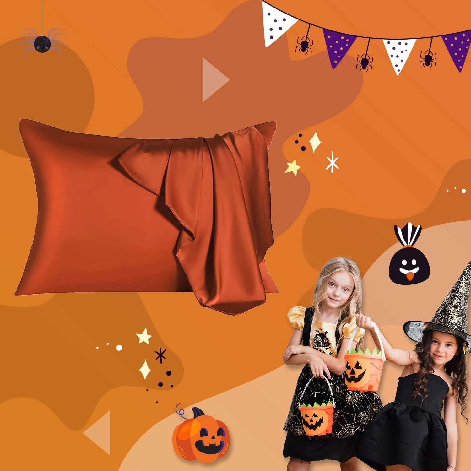 Mulberry Silk Pillowcase for Hair and Skin,Standard Size Cooling Silk Pillow Case with Hidden Zipper,Allergen Proof Dual Sides Soft Breathable Smooth Silk Pillow Cover for Women(Standard,Orange)