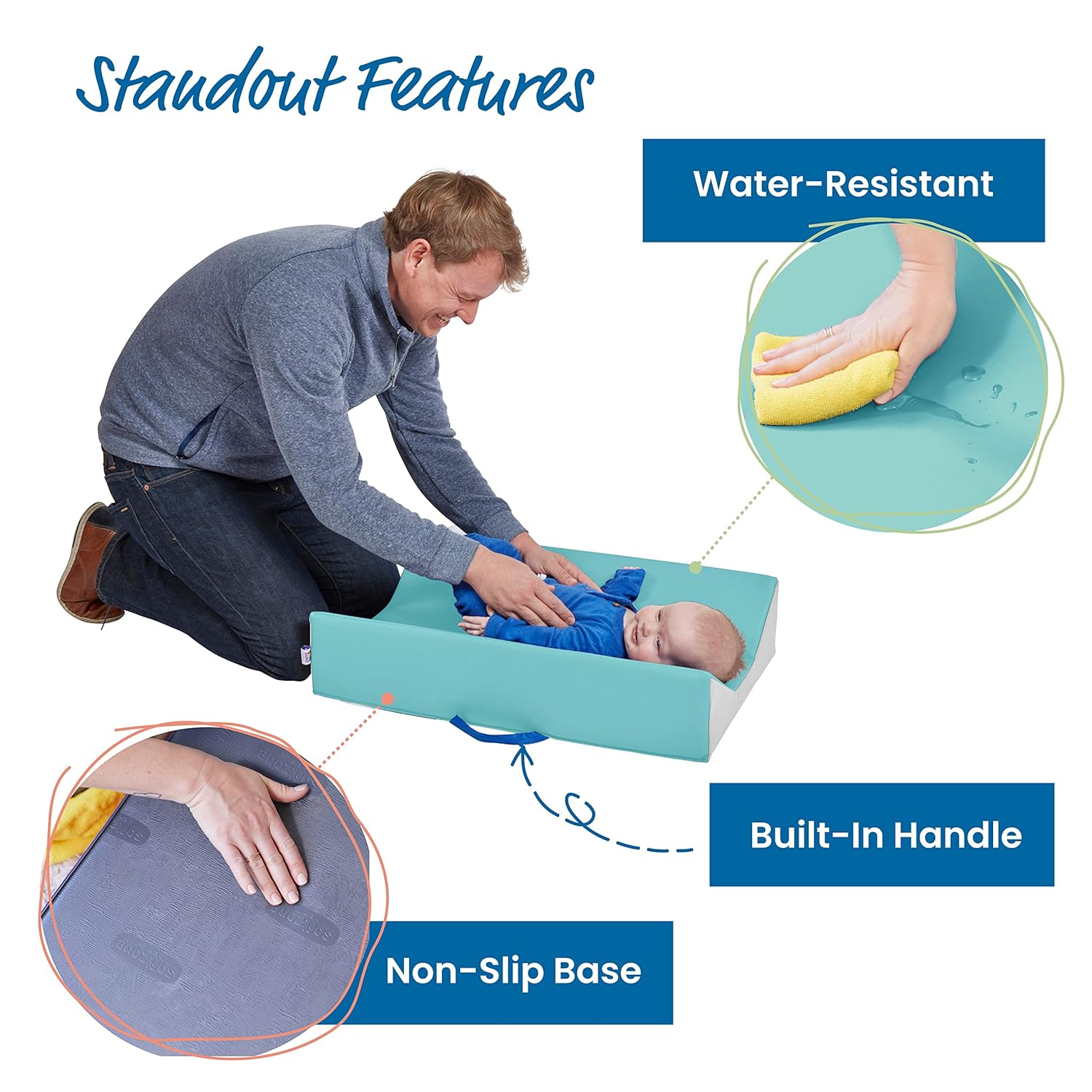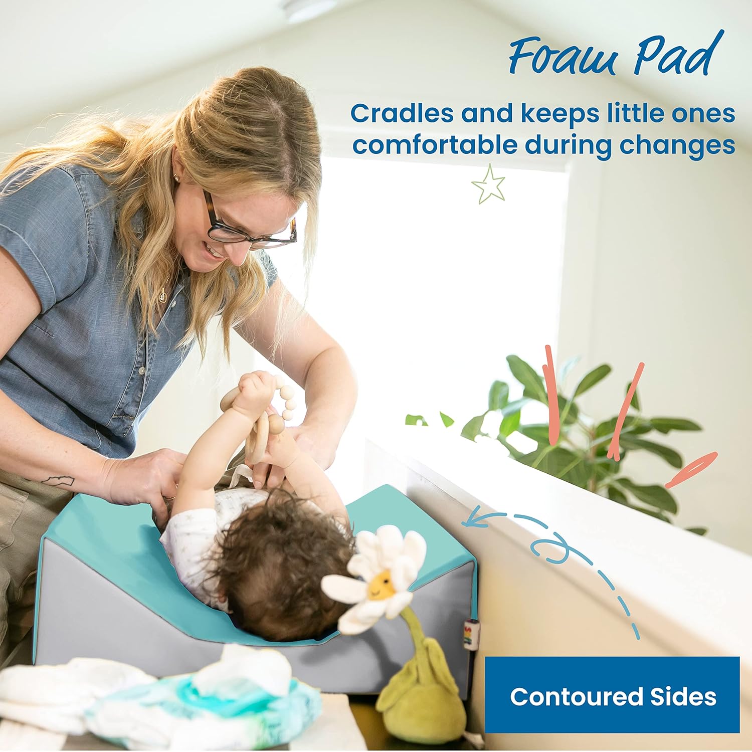 • Cozy Design: Use on any safe, flat surface, the plush pad cradles infants and babies and allows caregivers to face the child when changing diapers; the wide base features a non-slip bottom