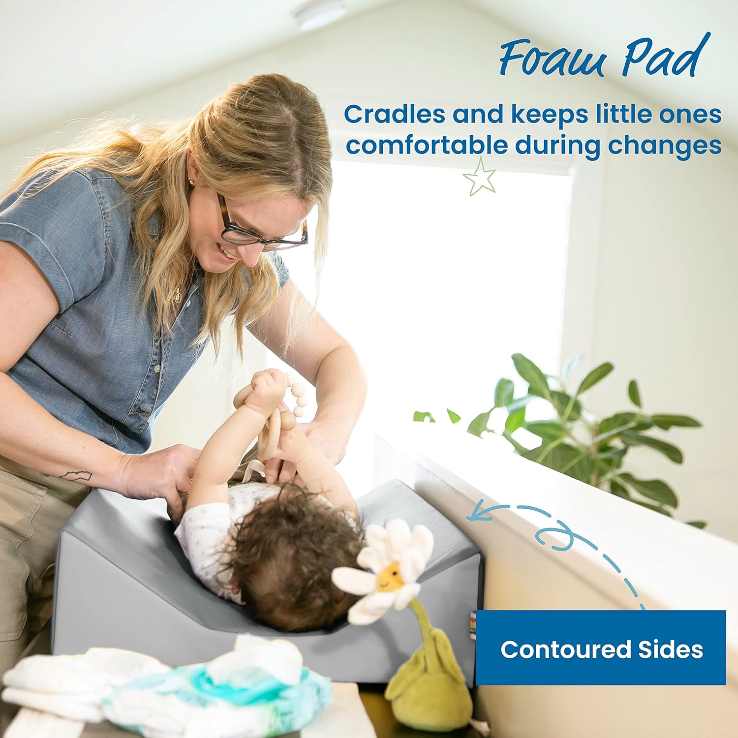 • Cozy Design: Use on any safe, flat surface, the plush pad cradles infants and babies and allows caregivers to face the child when changing diapers; the wide base features a non-slip bottom