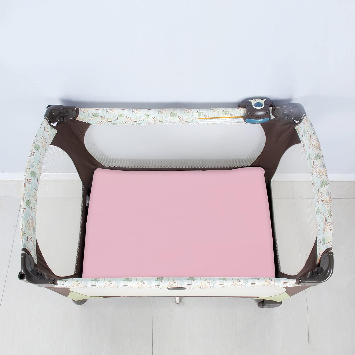 • High Quality: These pack n play sheets are made of ultra soft microfiber, woven into a soft and durable fabric,and the pack n play mattress pad is featuring 100% soft micropeach sleep surface and filled with soft polyester fiber, no more worry for leaky bottle messes, or potty training misses. Your baby will be enjoying the soft, smooth and comfortable feeling when sleeps or plays in the playard.