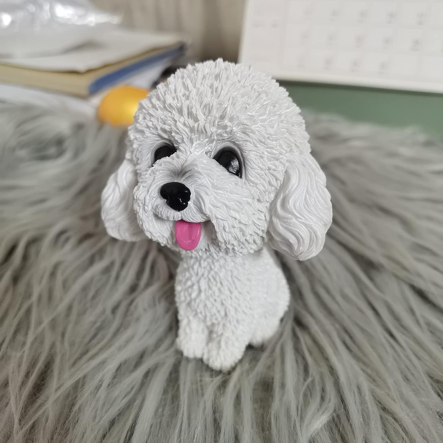 Resin Bobbing Head Dog Figurines Mini Bobblehead Puppy for Home Office Desk Car Dashboards Decor Ornaments (Teddy - White)