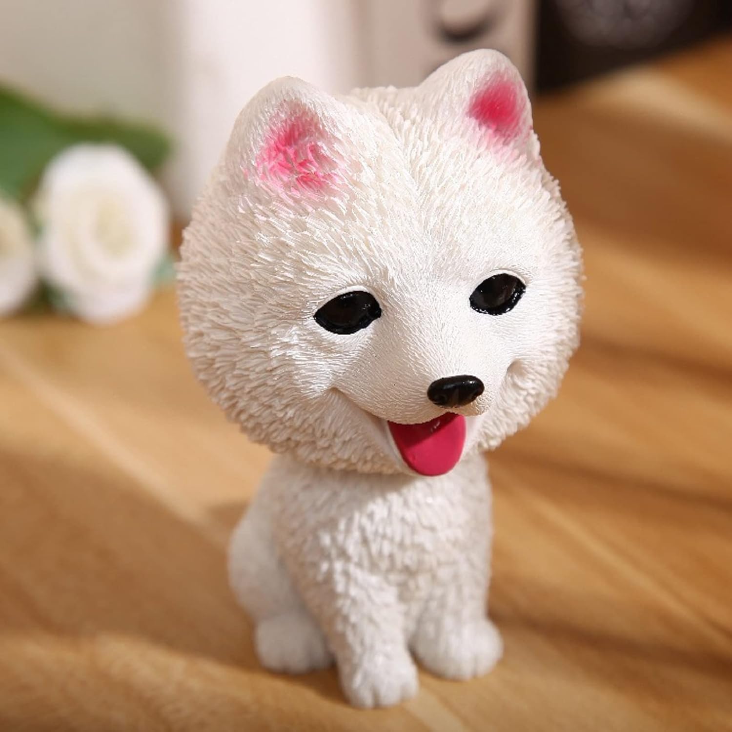 Resin Bobbing Head Dog Figurines Mini Bobblehead Puppy for Home Office Desk Car Dashboards Decor Ornaments (Samoyed)