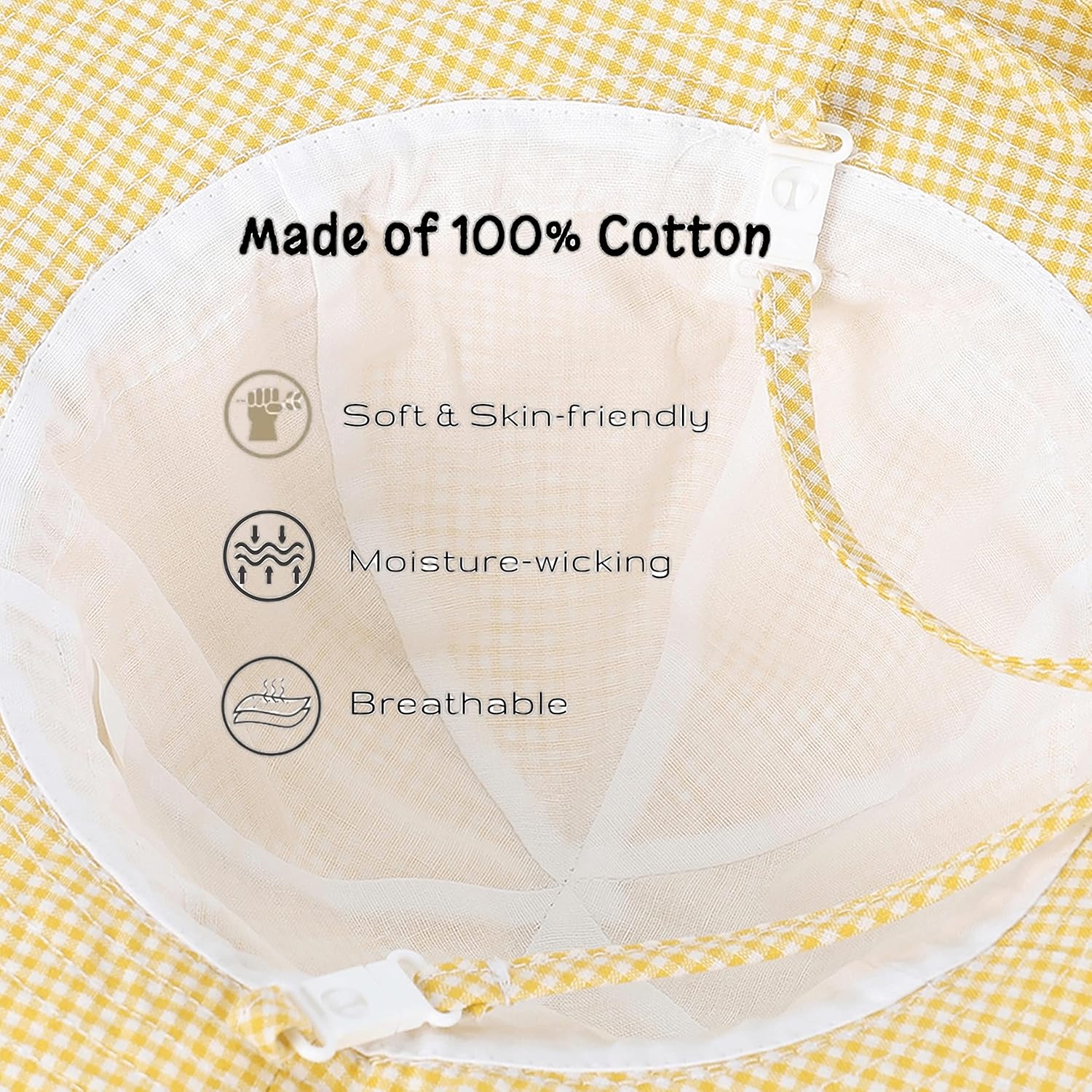 • ADJUSTABLE AND FASHIONABLE: There are 2 adjustments and 2 safety break-away clips on the hat for growing kids.One is head circumference adjustment .Another one is tender adjustment .Two break-away clips make it easy to remove the straps from the hat.Wide brim sun protection bucket hat is the perfect accessory for you. Comfortable, extra soft lining & multiple print designs on the outer in AZO free, perfect for all day wear.