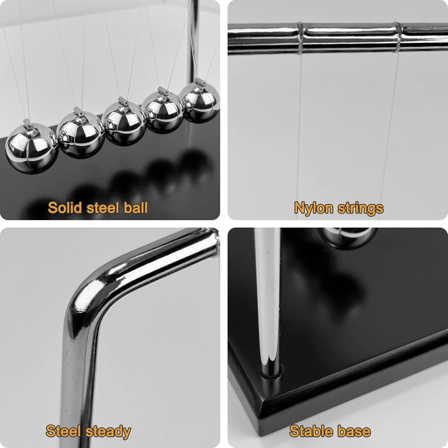 • High-Quality Craftsmanship: Featuring a sleek black wooden base and precisely aligned steel balls, this Newtons Cradle is designed for durability and visual appeal. Enjoy the mesmerizing motion and soothing sounds for years to come.