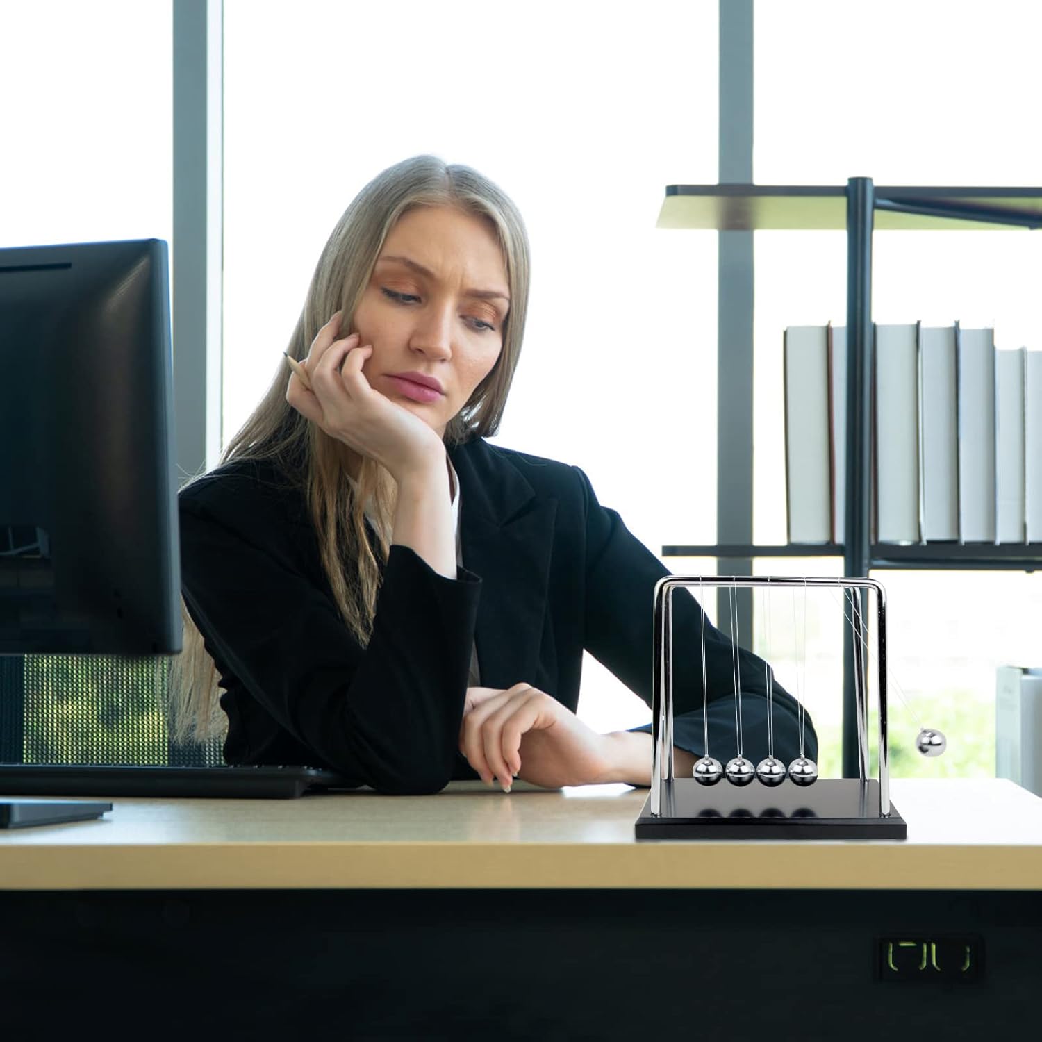 • Transform Your Desk with Stylish Office Decor: Elevate your workspace with the captivating newtons cradle pendulum. This desk toy not only adds a touch of elegance but also serves as a fascinating conversation starter.