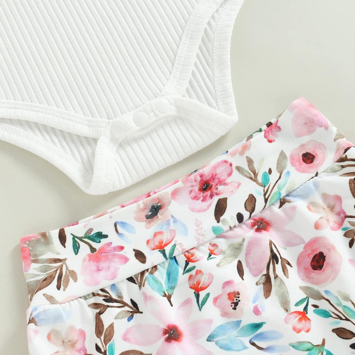 fhutpw Baby Girl Clothes Summer Cute Outfits 3 6 12 18 Months Spaghetti Strap Romper & Floarl Shorts Sets