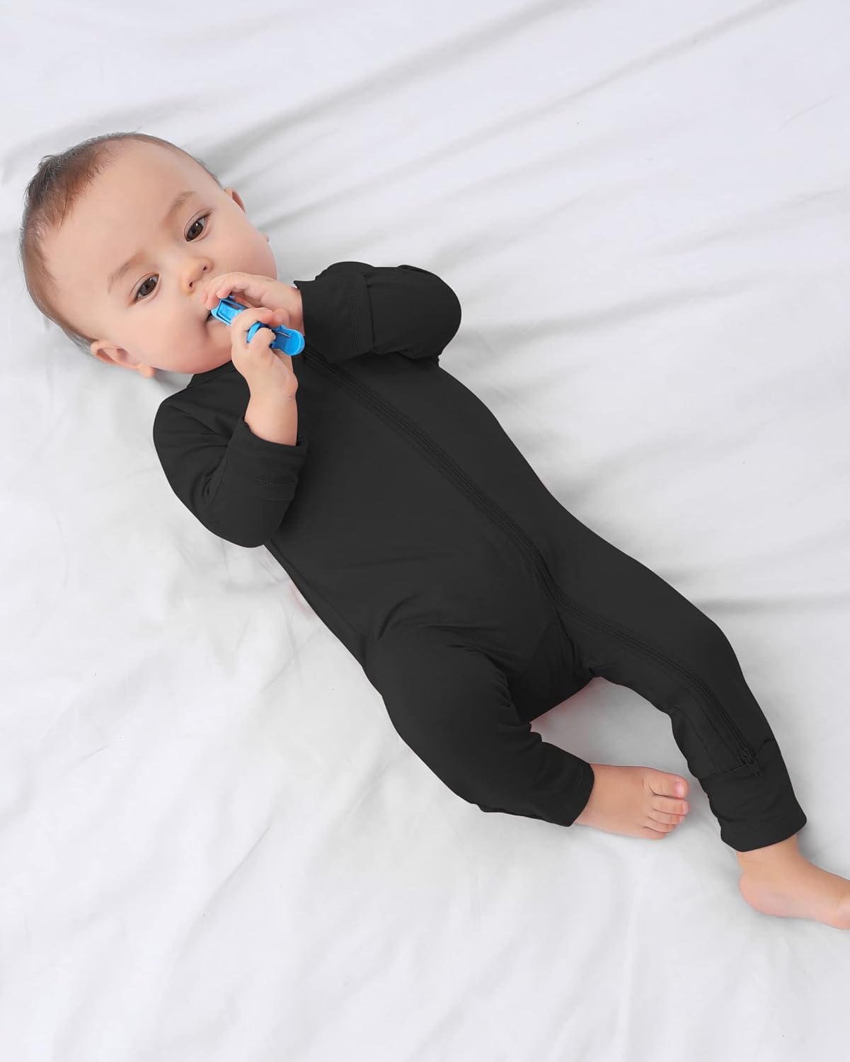 GUISBY Baby Pajamas with Mitten Cuffs - 3Pcs Girls Boys 2 Way Zipper Long Sleeve Rayon Sleepers