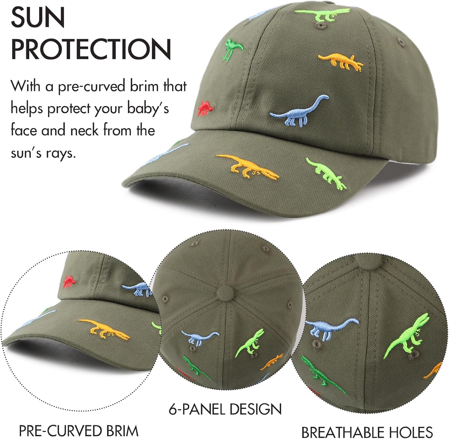 • FASHION DINOSAUR EMBROIDERY : Embroidery dinosaur pattern make your little one stylish and he/she would love to wear this hat with lovely dinosaur. The cute baby cap also designed several classic colors, easy to match other outfits. It is the best way to make your baby trendy. This cute hat is the best choice for you.