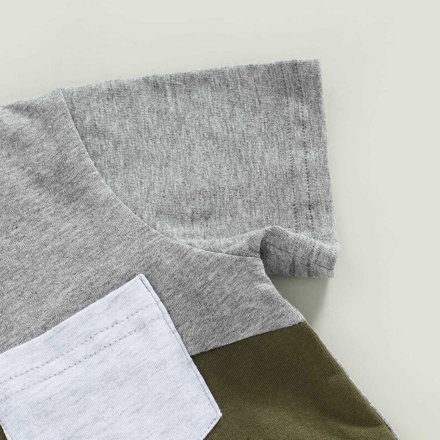 fhutpw Baby Toddler Boy Clothes Summer Outfits 6 12 18 24 Months Patchwork Short Sleeve T Shirt & Shorts Sets with Pockets