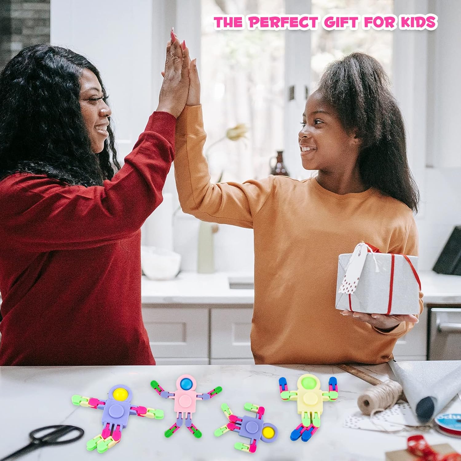 12 Pack Fidget Sensory Spinner Toys, Transformable Chain Robot Fingertip Toy,Pinata Goodie Bag Stuffers Birthday Valentines Day Gifts for Kids,Treasure Box Classroom Prize (A)