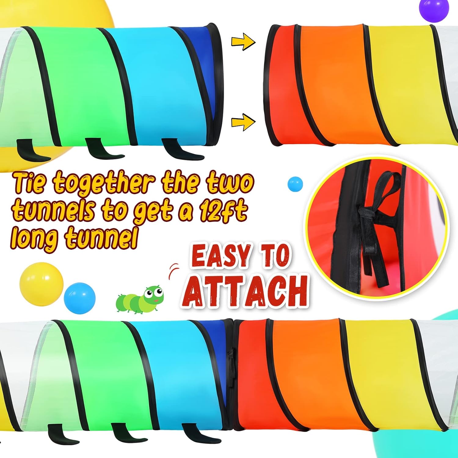 - 【More tunnels, more creativity and fun!】It can be used as a single long tunnel or with all two tunnels open, also can play peek-a-boo with the multiple tunnels. Add some extra ball pit balls and it allows your little ones to burn a lot of energy and have a good time. They will keep kids away from phones for hours and play with their friends. Perfect choice for family entertainment.
