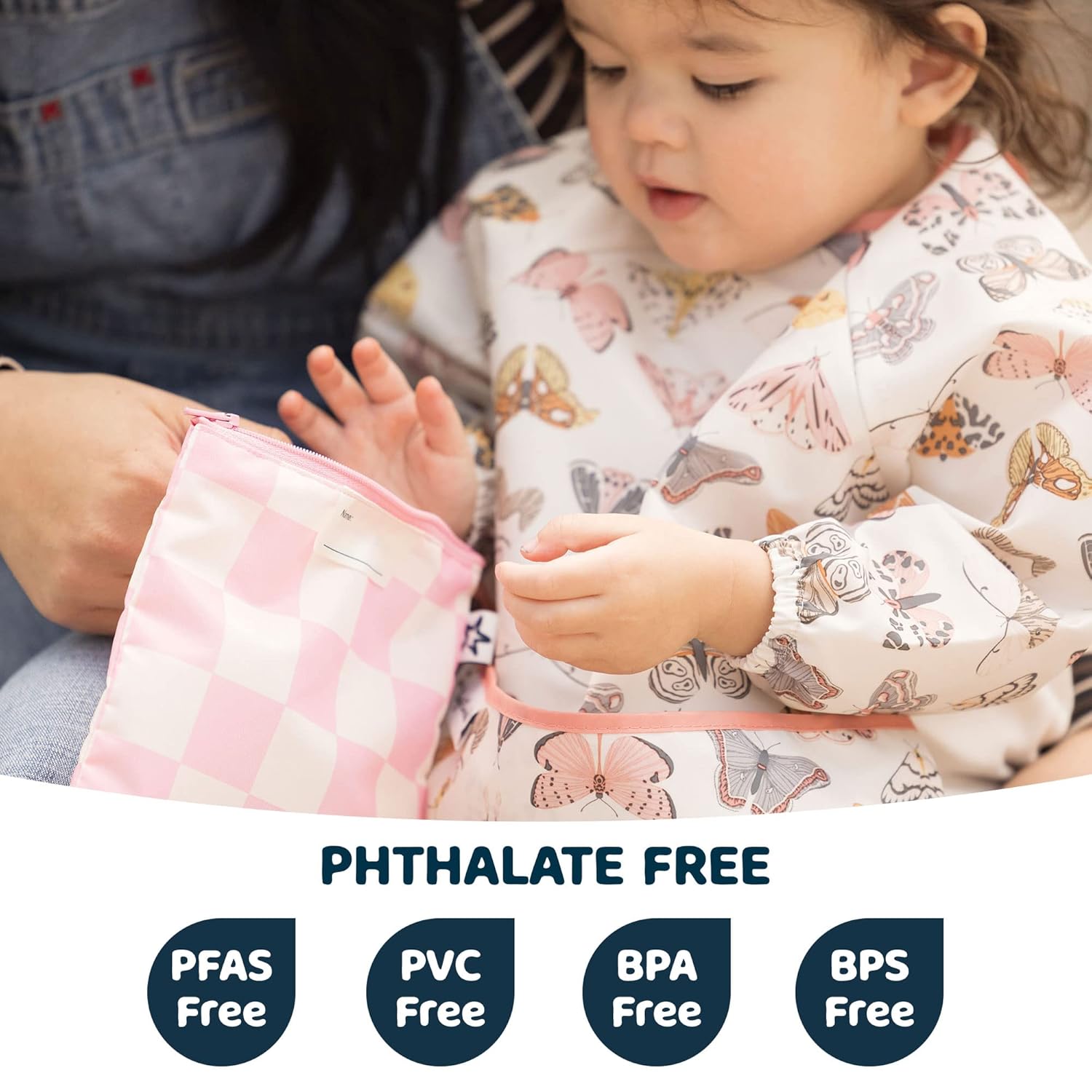 Tiny Twinkle Mess Proof Baby Bib,Waterproof Smock Baby Bib for Eating,Machine Washable Long Sleeve Bib,Baby Led Weaning,Toddler Bib,BLW Supplies(Flutter, Small 6-24 Months)