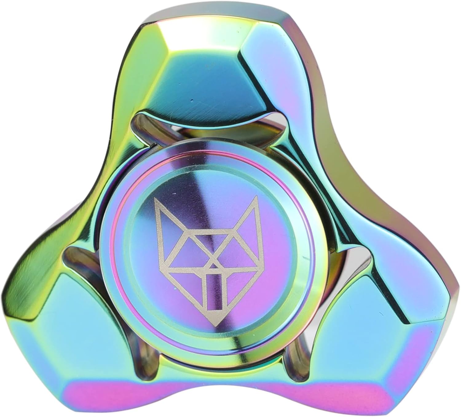 FREELOVE Metal Fidget Spinner, Stainless Steel Heavy, Long Spinning Toys, Cool Silent, Small Mini Fox Figette Spiner for Adults Men Anxiety, Quiet Bearing, Rainbow