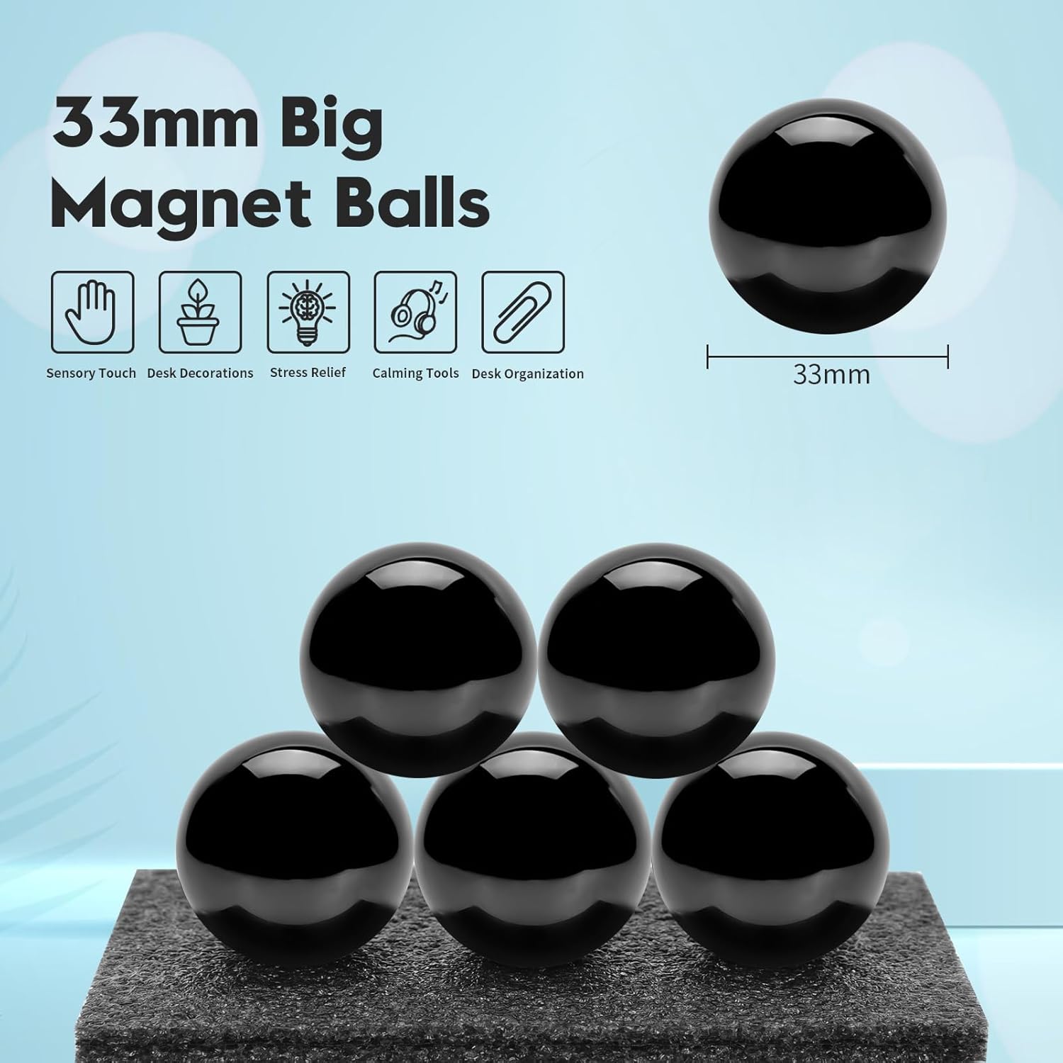 Magnetic Balls, 33mm Magnetic Fidget Balls, Magnets Balls Fidget Toys for Adults, Executive Desk Toys Gift for Stress Relief and Desk Decorations for Men, Women, Teens, Office Workers (Black, 6 Pack)…