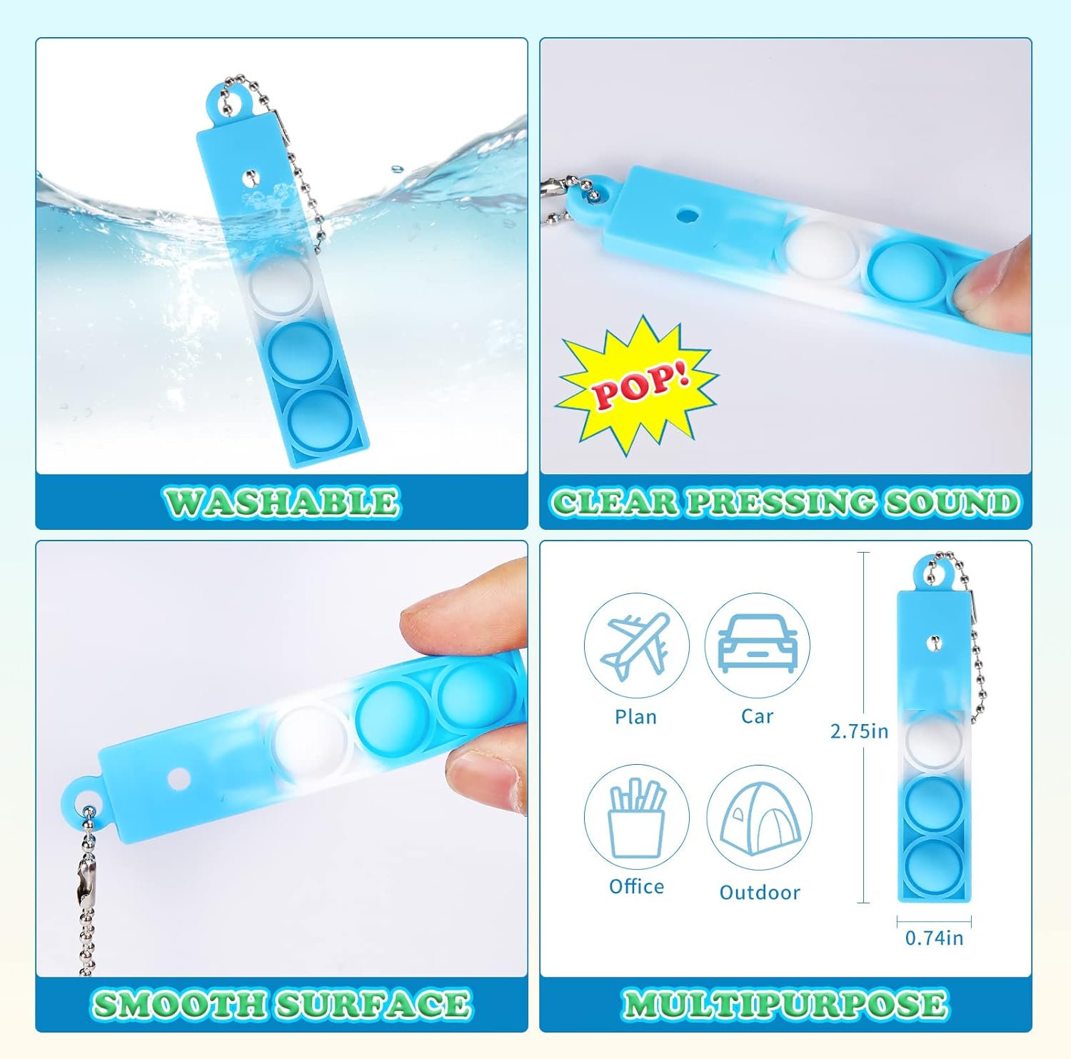 - 【Relaxation and Entertainment】This mini pop keychain can relieve anxiety by pressing.Not only for kids, but also for adults,it helps to change the mood and create a good atmosphere.When the bubble is pressed,the mini pop toy makes a slight popping sound and is also suitable for students,office stress relief,fatigue relief,and toys for kid with autism.This multi-purpose silicone squeeze toy is the perfect game for parents,seniors,children and adults.