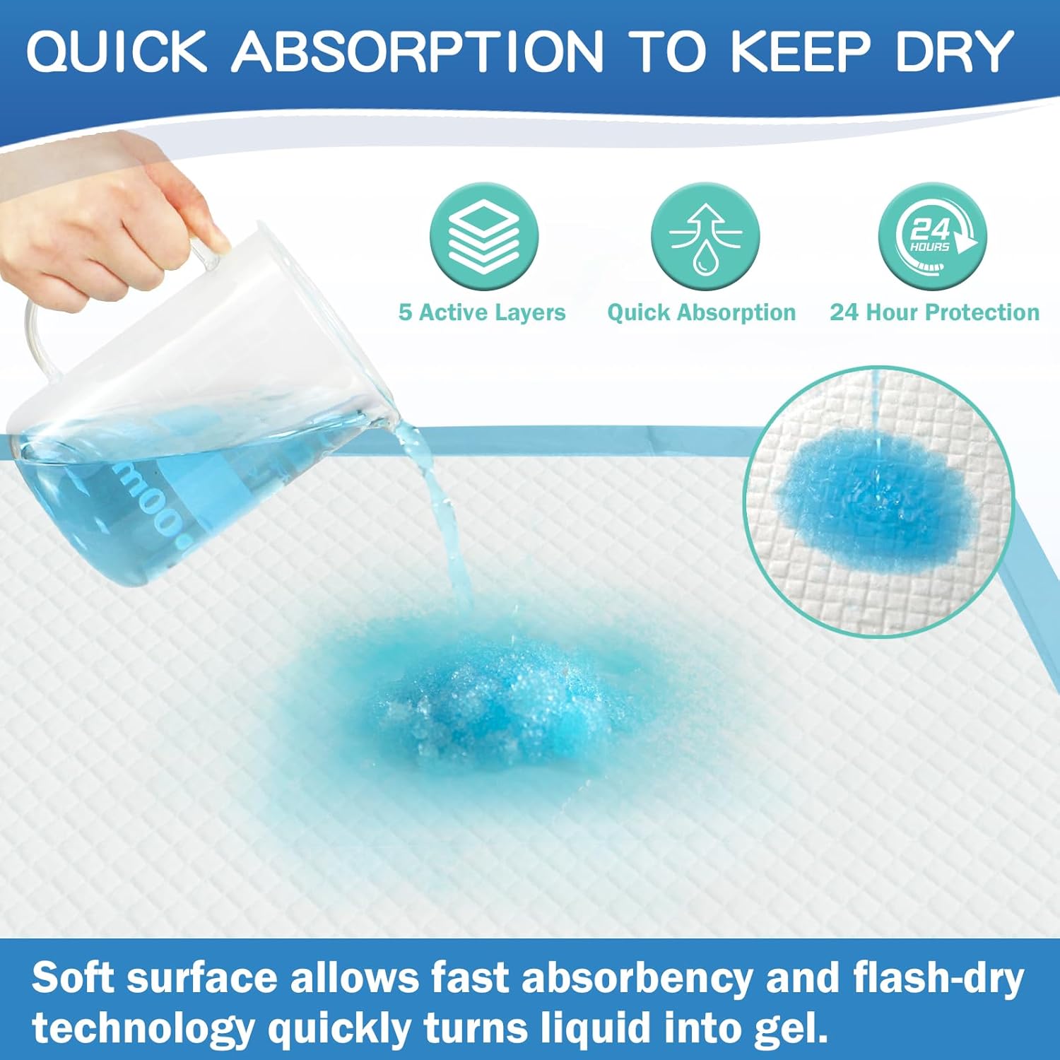 • Super Absorbent: Our premium bed pads with 6 layers can lock in large amount of liquid instantly.Rhombic embossing design helps to rapidly divert urine,keeping the surface dry.Size in 22"x23"(56x58 cm) can perfectly meet daily protection