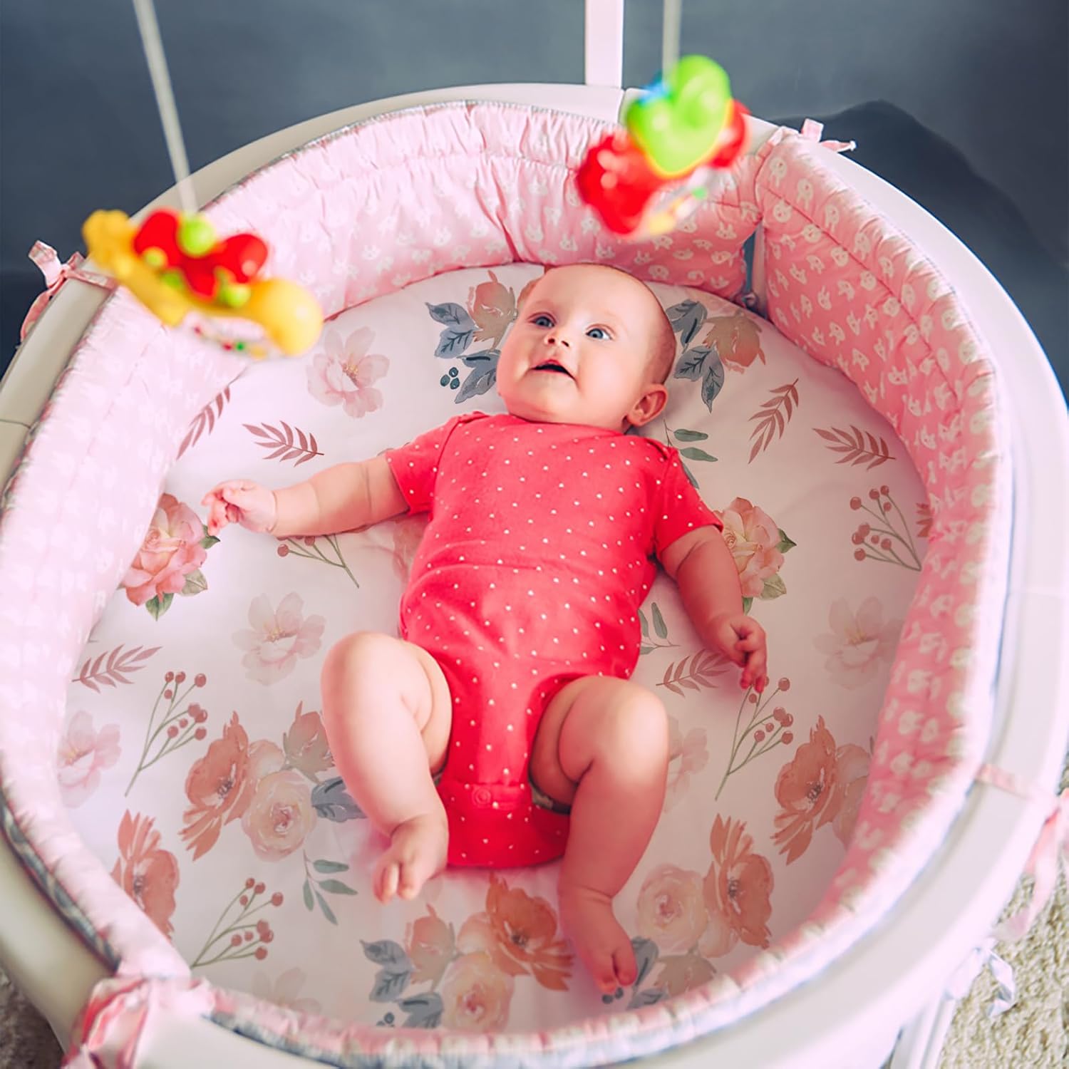 Gllquen Baby Bassinet Sheets 4 Pack, Breathable Cozy Fitted Mattress Sheet, Elastic Travel Crib Fashionable Floral Pattern, Standard Cradle Safe Sheets for Baby Boys Girls 32"x16" (Flower)