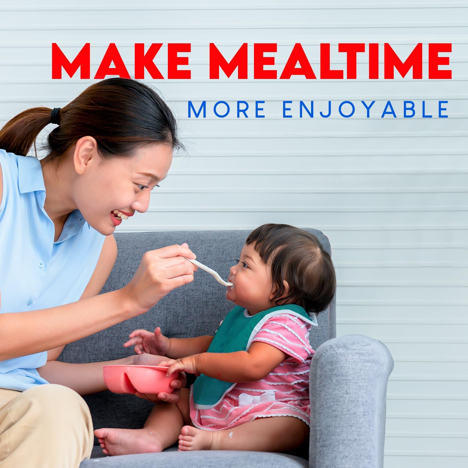 • EXTRA WIDE COVERAGE KEEPS SPILLS OFF - Because even though there is no pocket, Toppy Toddler bibs are longer and wider than most. So clothes stay clean. Although some bibs have pockets, most of the time food still finds its way to the floor or lap area. And as good as crumb catchers are, this bib gives you 20 percent more coverage with an impressive 13" x 18" surface area. Almost 12" from the neck down. That's 235 square inches of total protection extending to the lap area too.